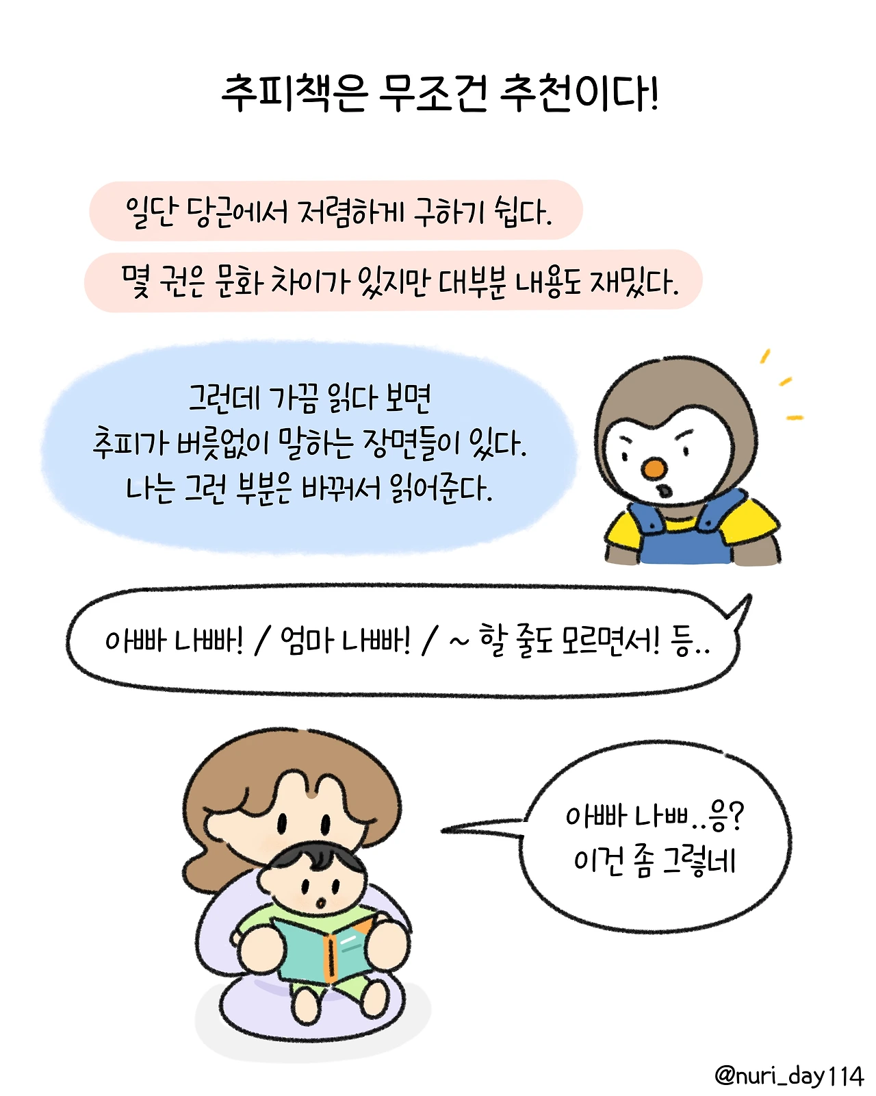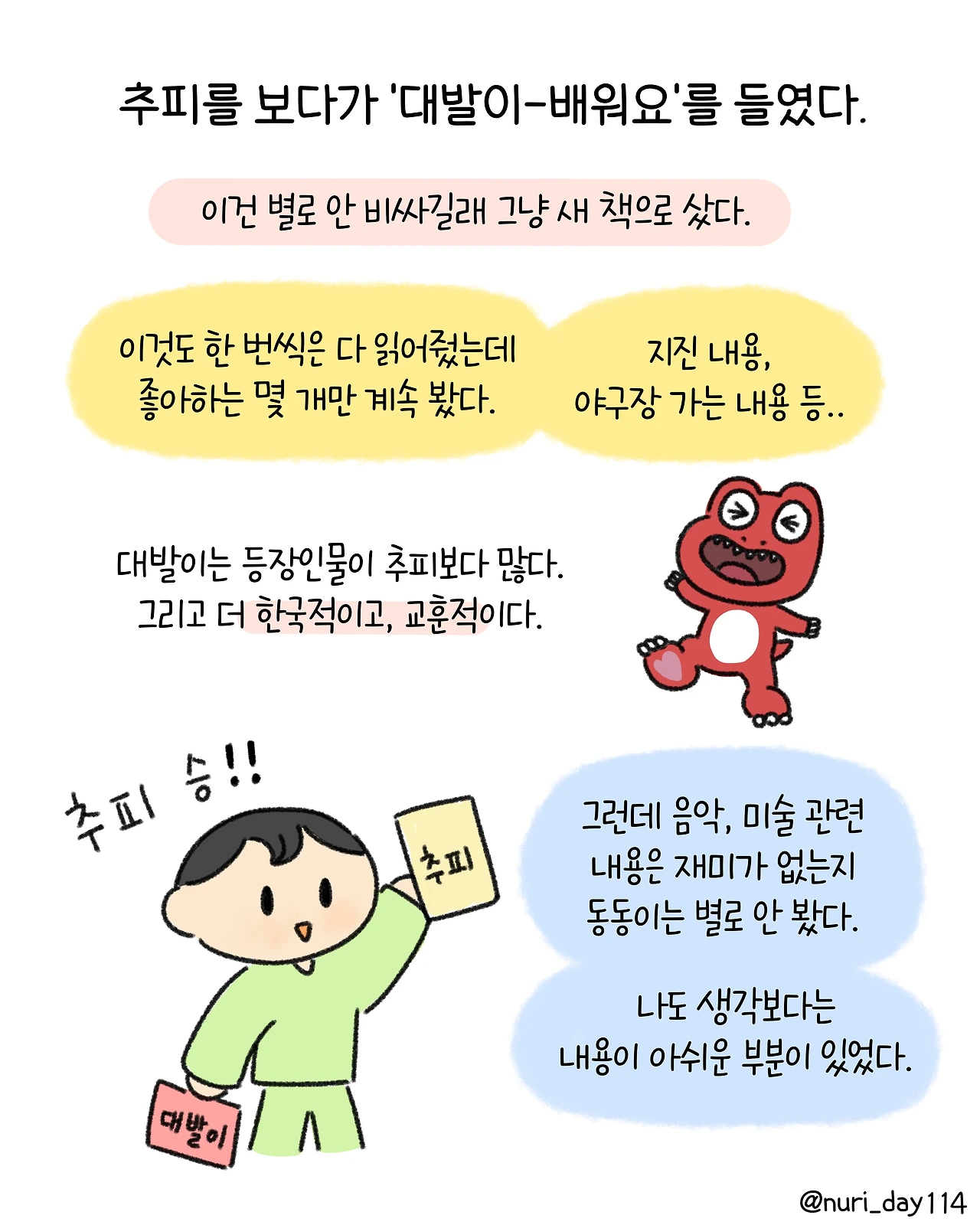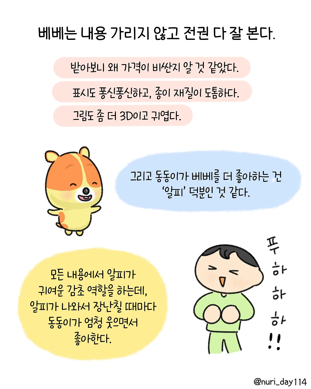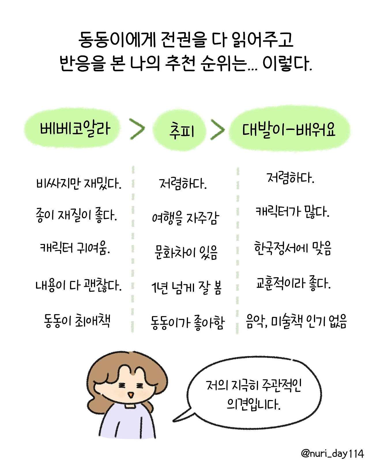 추피, 베베, 대발이 생활동화책 비교