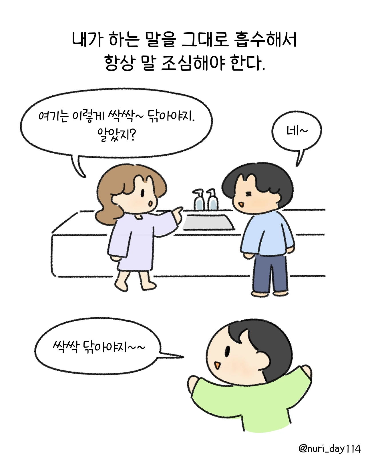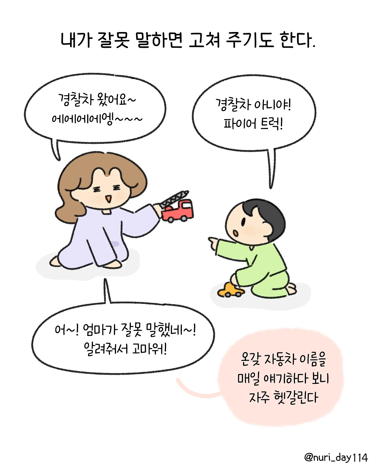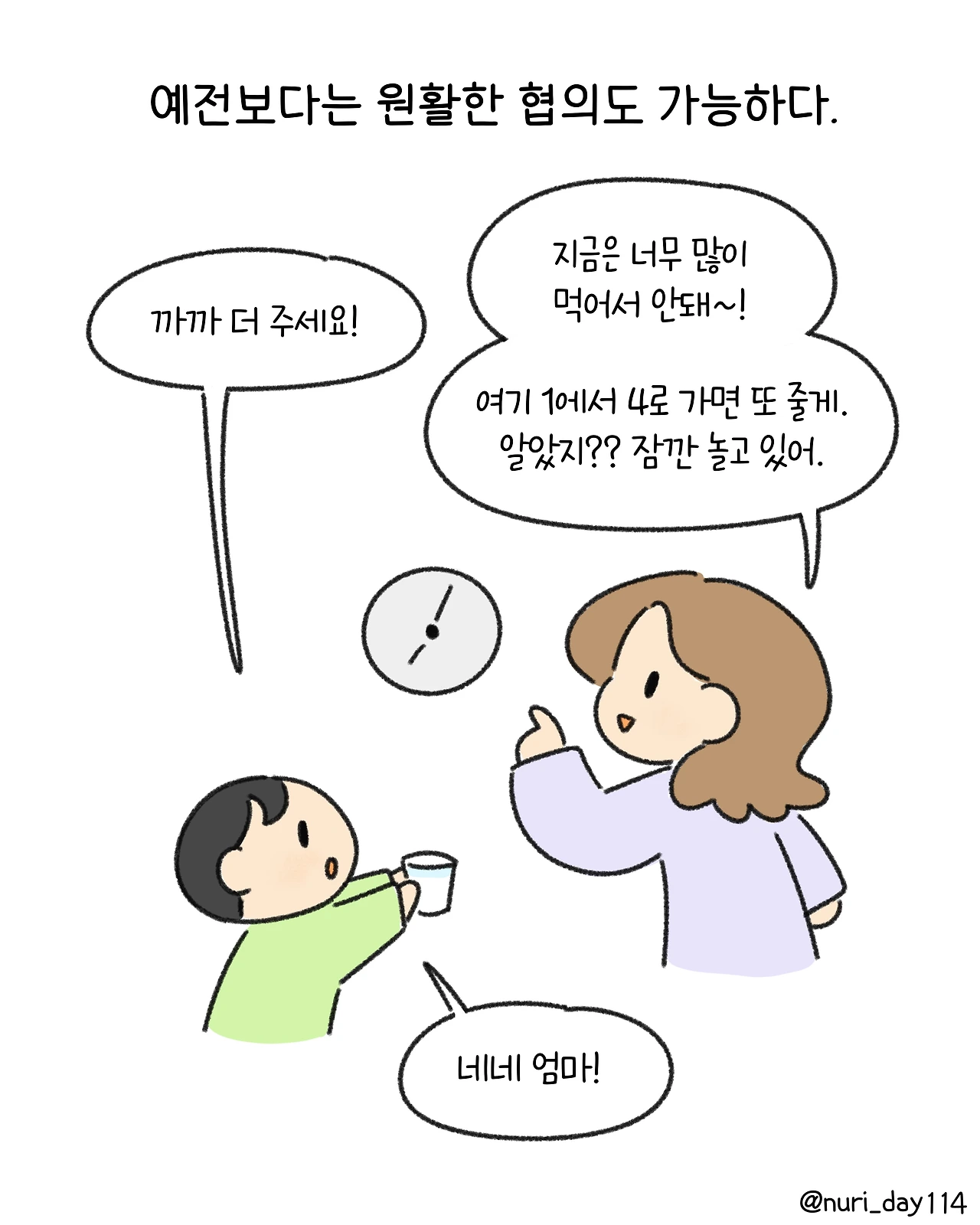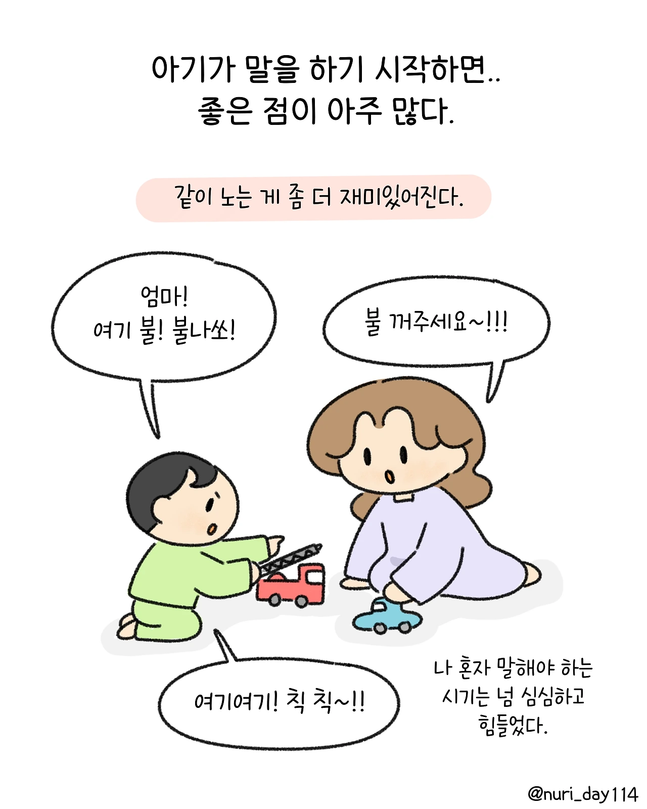 길에서도 말을 쉴 수 없는 엄마