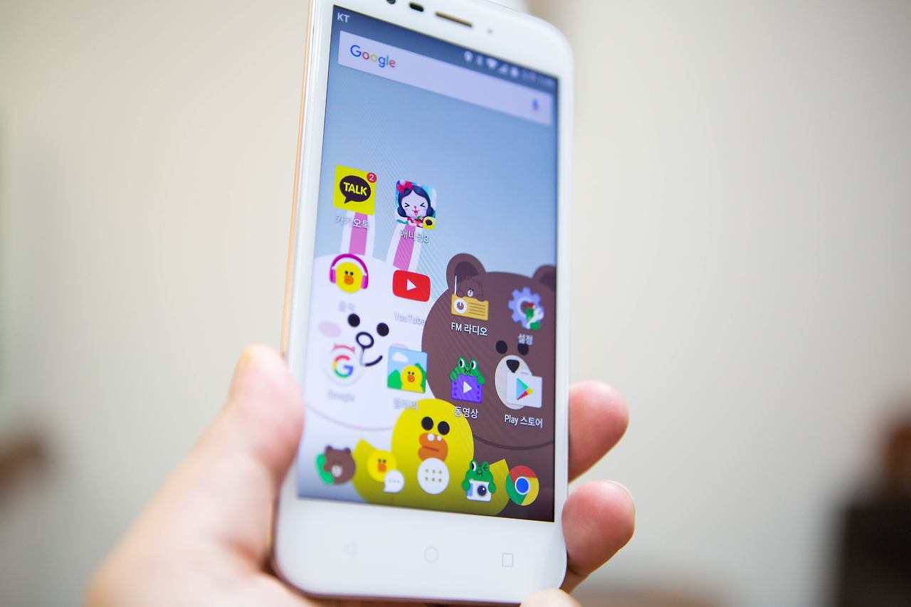 국내뿐 아니라 해외에서도 큰 인기를 얻고 있는 브라운, 코니 등의 라인프렌즈 인기 캐릭터들이 스마트폰 속으로 쏙~~ 들어간 라인프렌즈 스마트폰이 국내 출시되었습니다. 최근 KT에서 자사 전용 단말기로 출시하였는데요. 겉 외형만 살피면 별다를 것 없는 일반 스마트폰과 동일하지만 제품을 켜는 순간 라인프렌즈의 인기 캐릭터들이 UI 속에 녹아든 것을 확인할 수 있습니다.