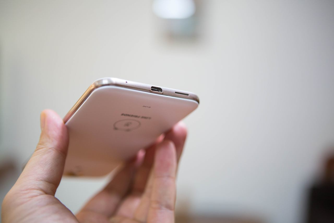 제품 하단에는 통화용 마이크와 마이크로 5핀 단자, 멀티미디어 스피커가 있고, 위쪽에는 영상 촬영용 마이크와 3.5mm 이어폰 단자가 자리 잡고 있습니다.
