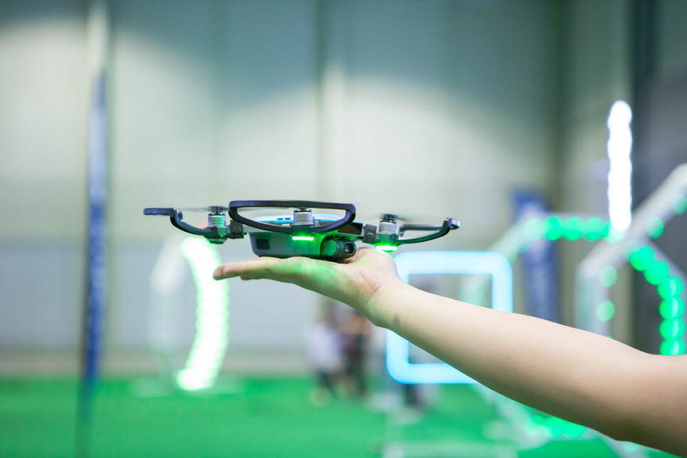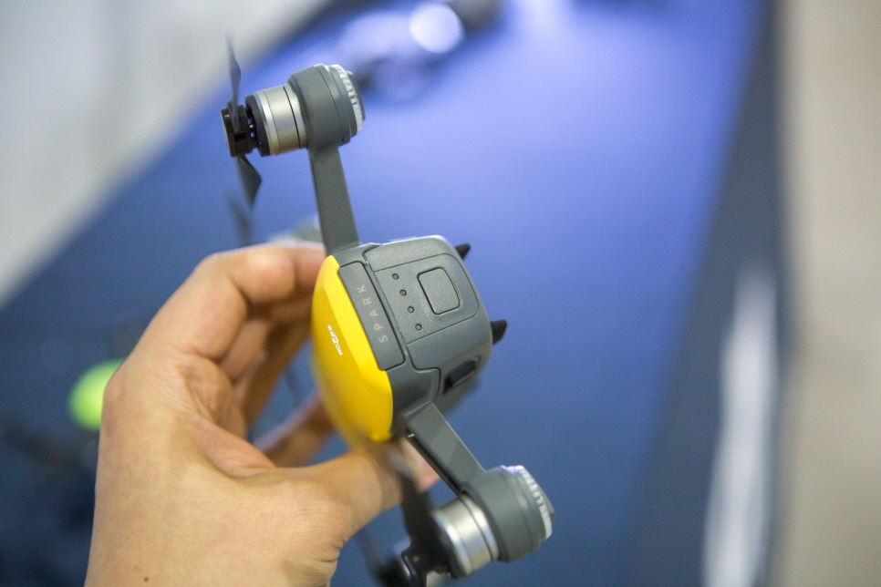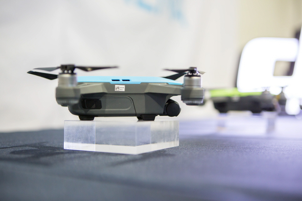 행사장 도착 후 전시되어 있던 DJI 스파크를 살펴봤습니다. 알파인 화이트, 스카이 블루, 메도우 그린, 라바 레드, 선라이즈 옐로우 총 다섯가지 컬러로 전시되어 있었습니다.