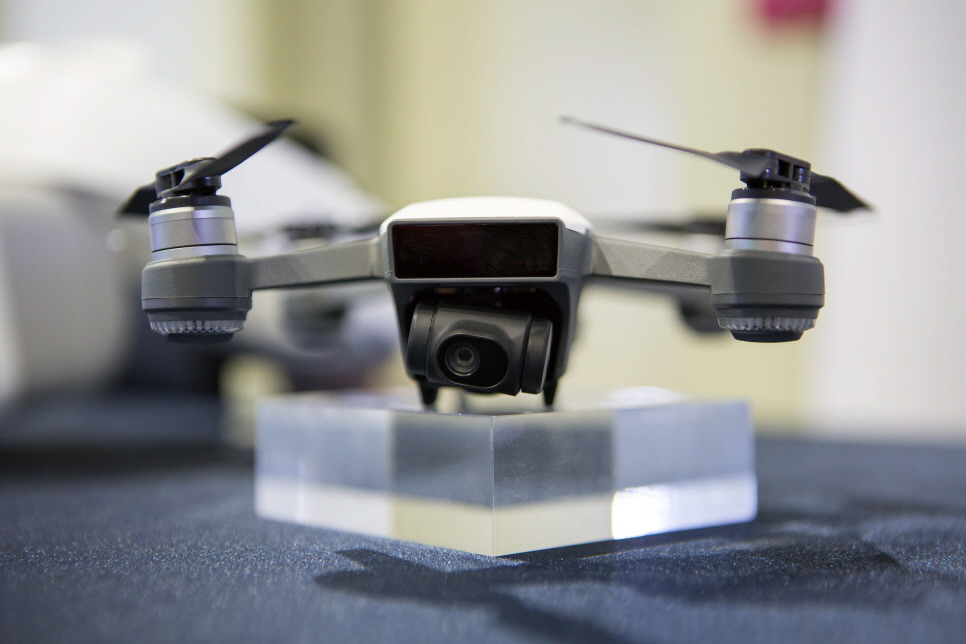 전면에는 3D 센서가 위치합니다. 해당 센서를 통해 사용자를 인식하여 반응하게 됩니다. 그 아래 짐벌과 카메라가 자리 잡고 있습니다. DJI 스파크에는 2축 짐벌이 탑재되었습니다.