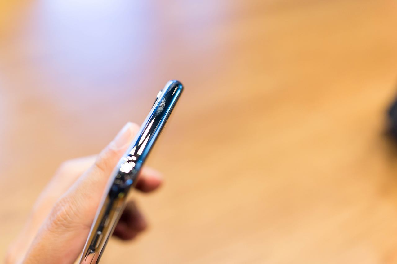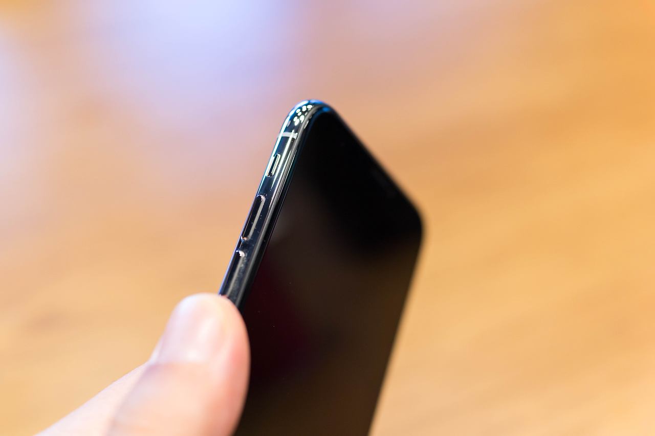 측면 스테인리스 스틸 테두리에 지문이 굉장히 잘 묻습니다. 제품 측면 상단에는 그 어떤 것도 없고요. 오른쪽 측면에는 기존의 전원 / 화면 잠금 버튼이 좀 더 큰 사이즈로 변경되어 자리 잡고 있는 모습입니다.