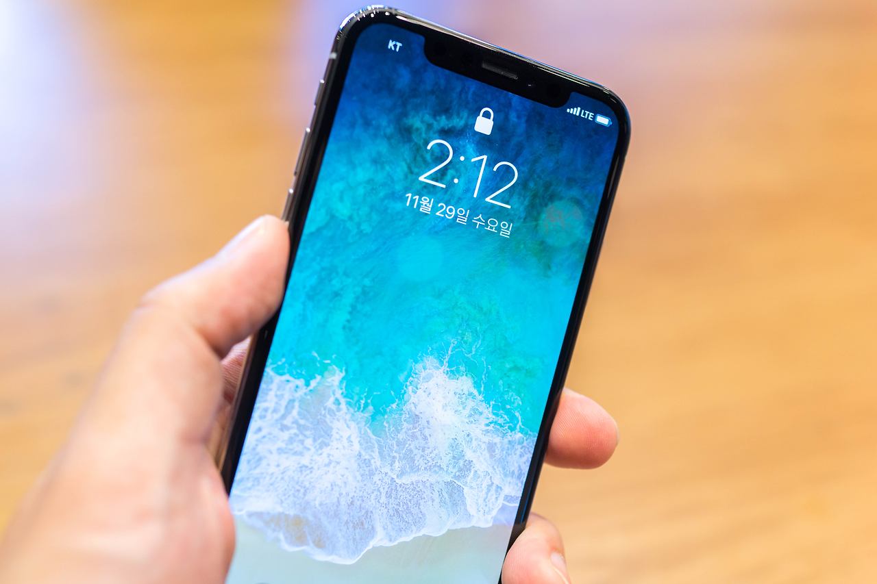 정면에서 바라본 아이폰X 모습! 노치 디자인이 아주 이상하지는 않아요~~
