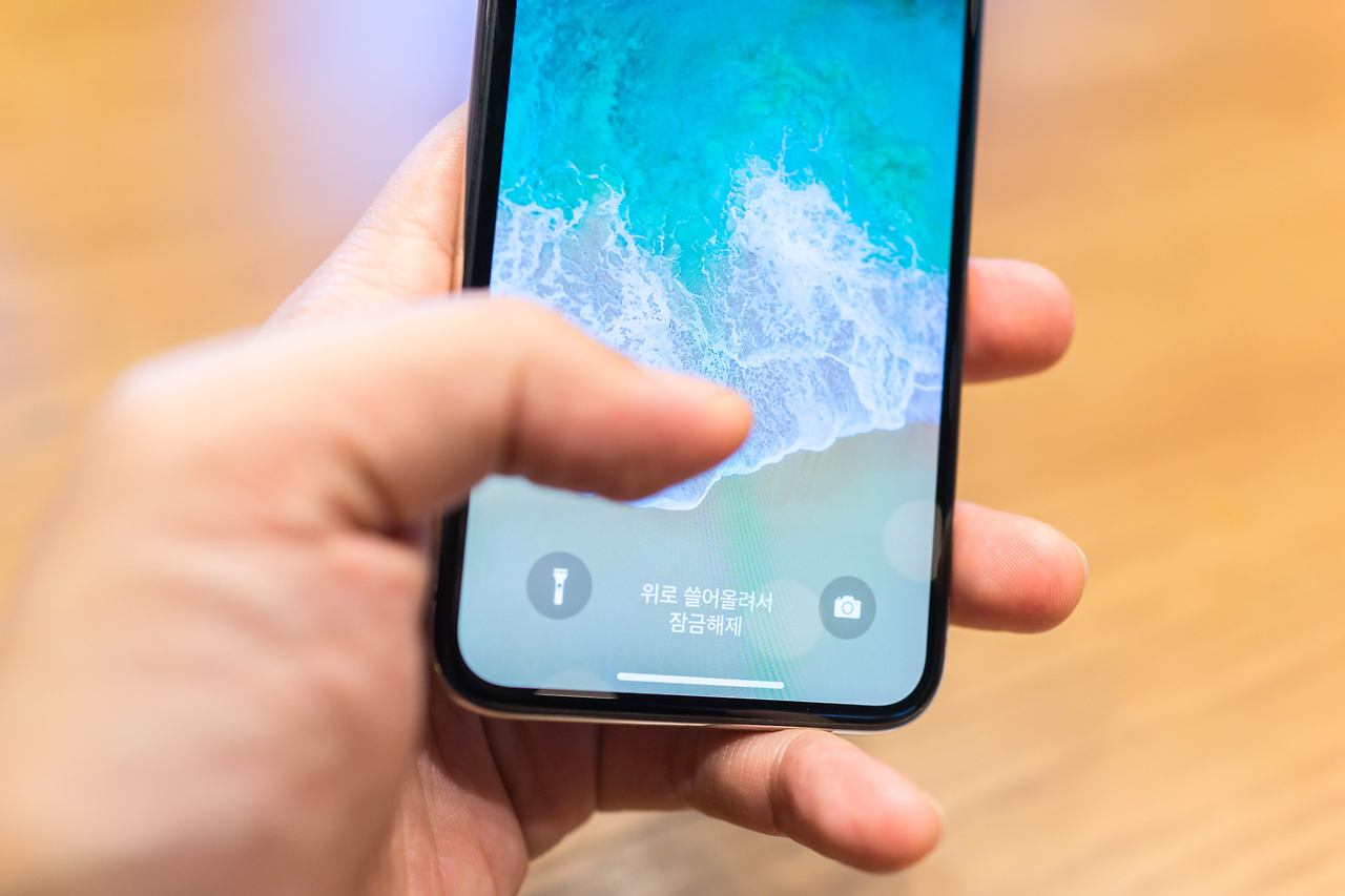 홈버튼이 사라졌기 때문에 위로 쓸어올려서 잠금 해제를 할 수 있습니다. 동일한 제스처로 홈버튼 누르는 것과 같은 기능도 하고요. 근에 이게 새롭긴 한데 편하진 않습니다. 그냥 홈버튼 누르던 예전의 아이폰이 그립기도 해요.
