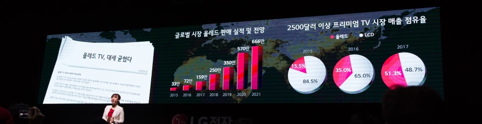 인공지능과 더욱 완벽해진 화질로 새롭게 선보이는 LG전자의 2018년형 OLED TV가 어제 '서초 R&D 캠퍼스'에서 발표되었습니다. 제가 현장에 직접 찾아가 새로워진 신제품들을 살펴봤는데요. 올레드 TV ThinQ(씽큐)는 상당히 인상적이고 매력적인 제품이었습니다. 프리미엄 TV시장에서 승승장구하고 있는 LG전자! 올해도 이변이 없는 한 LG전자 올레드 TV의 위상은 더욱 높아지지 않을까..라는 생각을 해 봅니다.