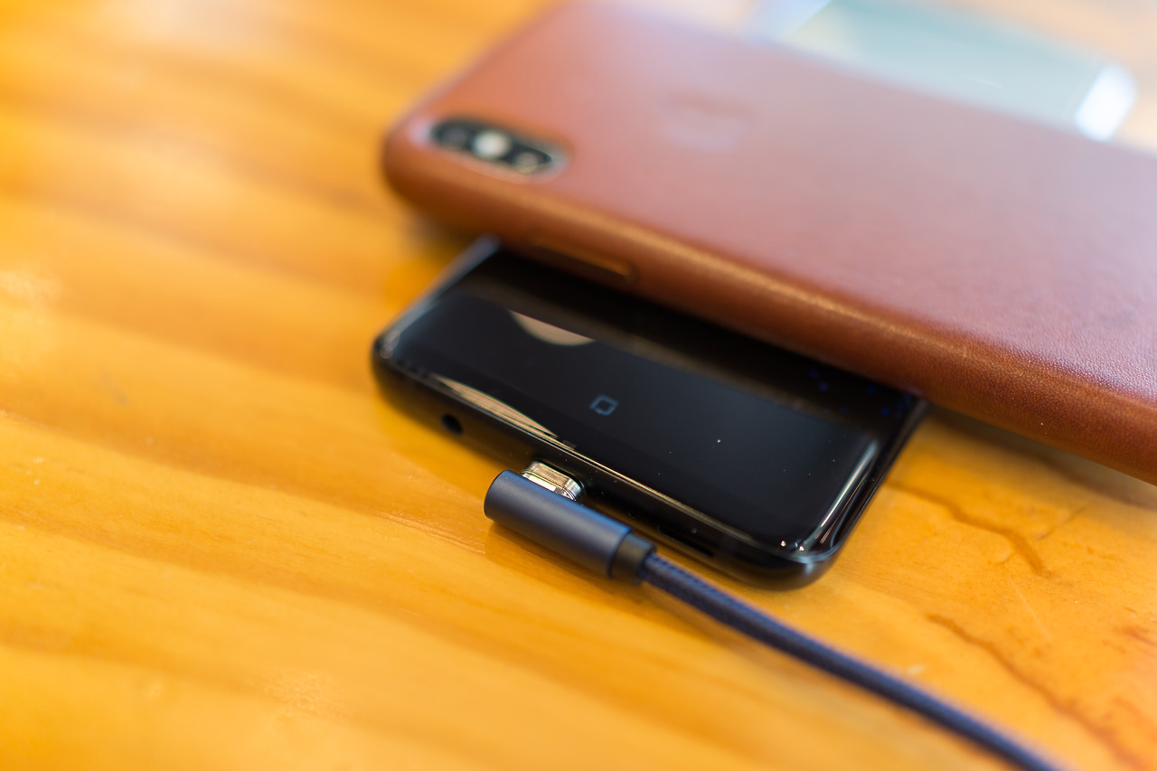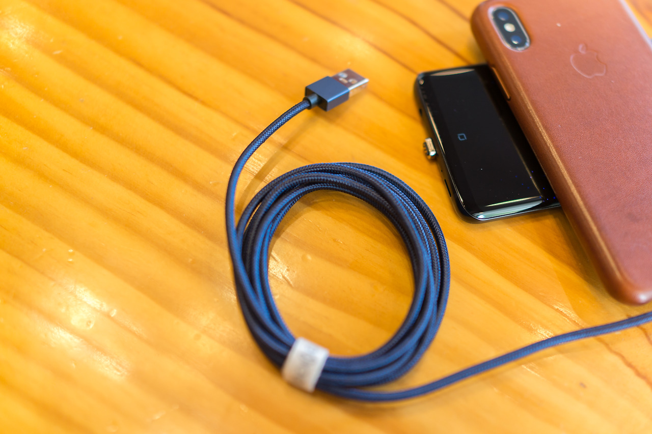 충전은 기존과 동일하게 커넥터 근처에 케이블을 가져가면 알아서 '착' 달라붙어 충전되는 방식이고요. 2.4A 고속 충전도 지원하며 나일론 재질이라 케이블도 상당히 튼튼합니다.