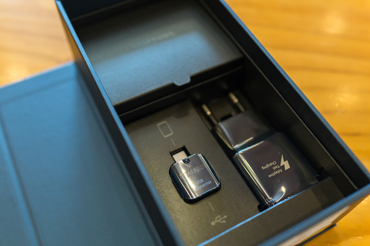 USB 커넥터를 사용하여 기존 사용하시던 스마트폰과 연결하면 데이터를 쉽고 빠르게 백업할 수 있습니다. 충전 어댑터는 고속 충전을 지원합니다. 케이블은 USB Type C 단자입니다.