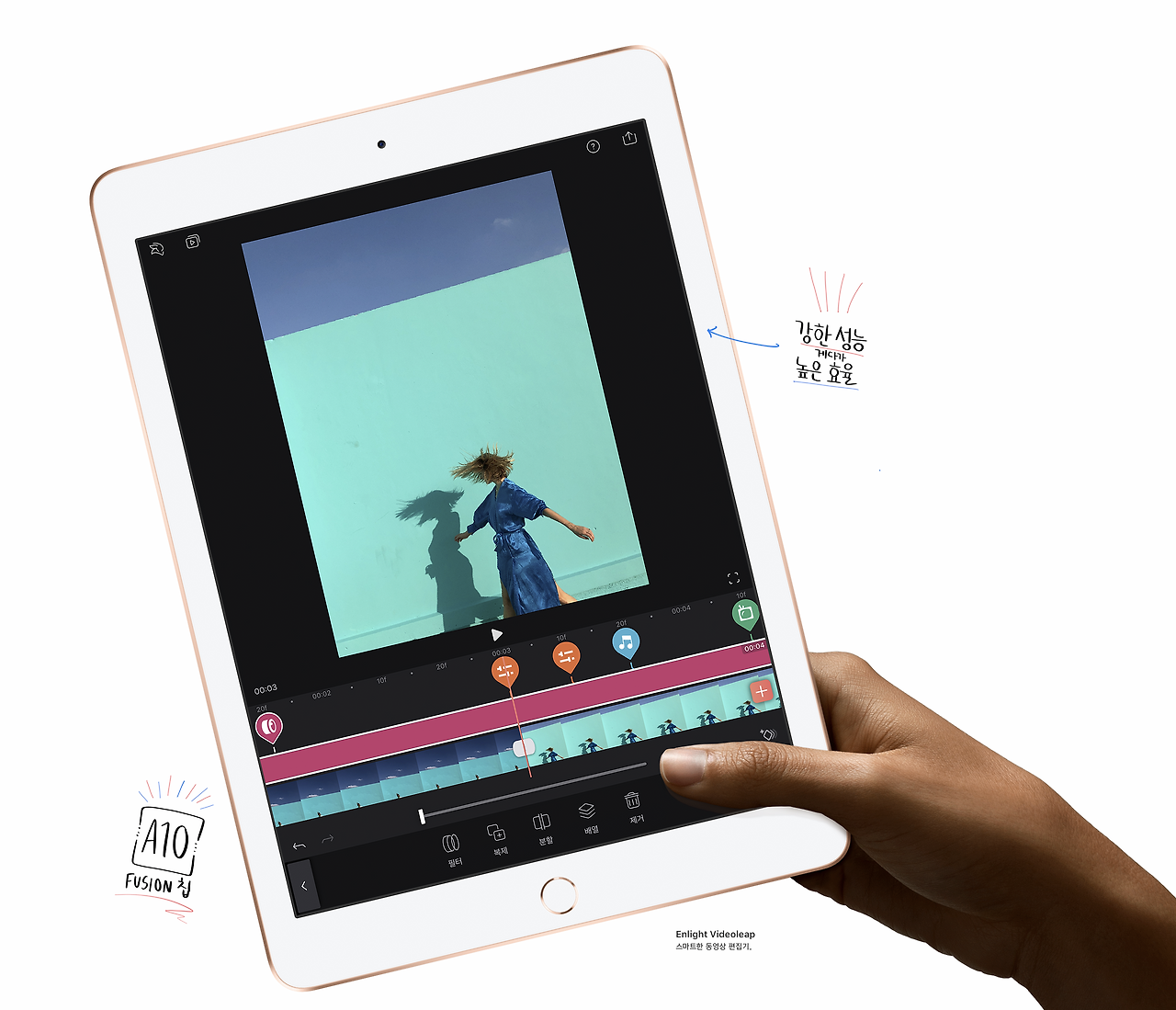 애플의 A10 Fusion 칩셋이 탑재된 아이패드는 4K 동영상 편집은 물론 고사양 그래픽 게임을 즐길 때에도 충분한 성능을 보여줍니다.