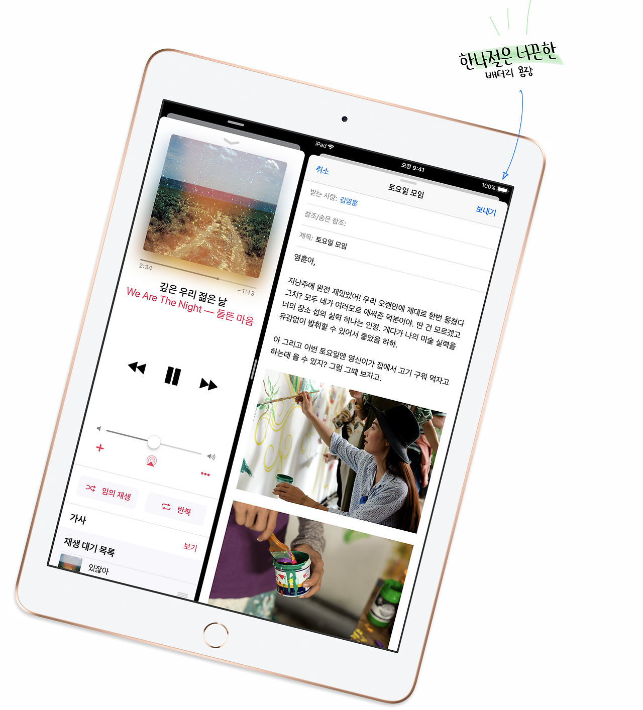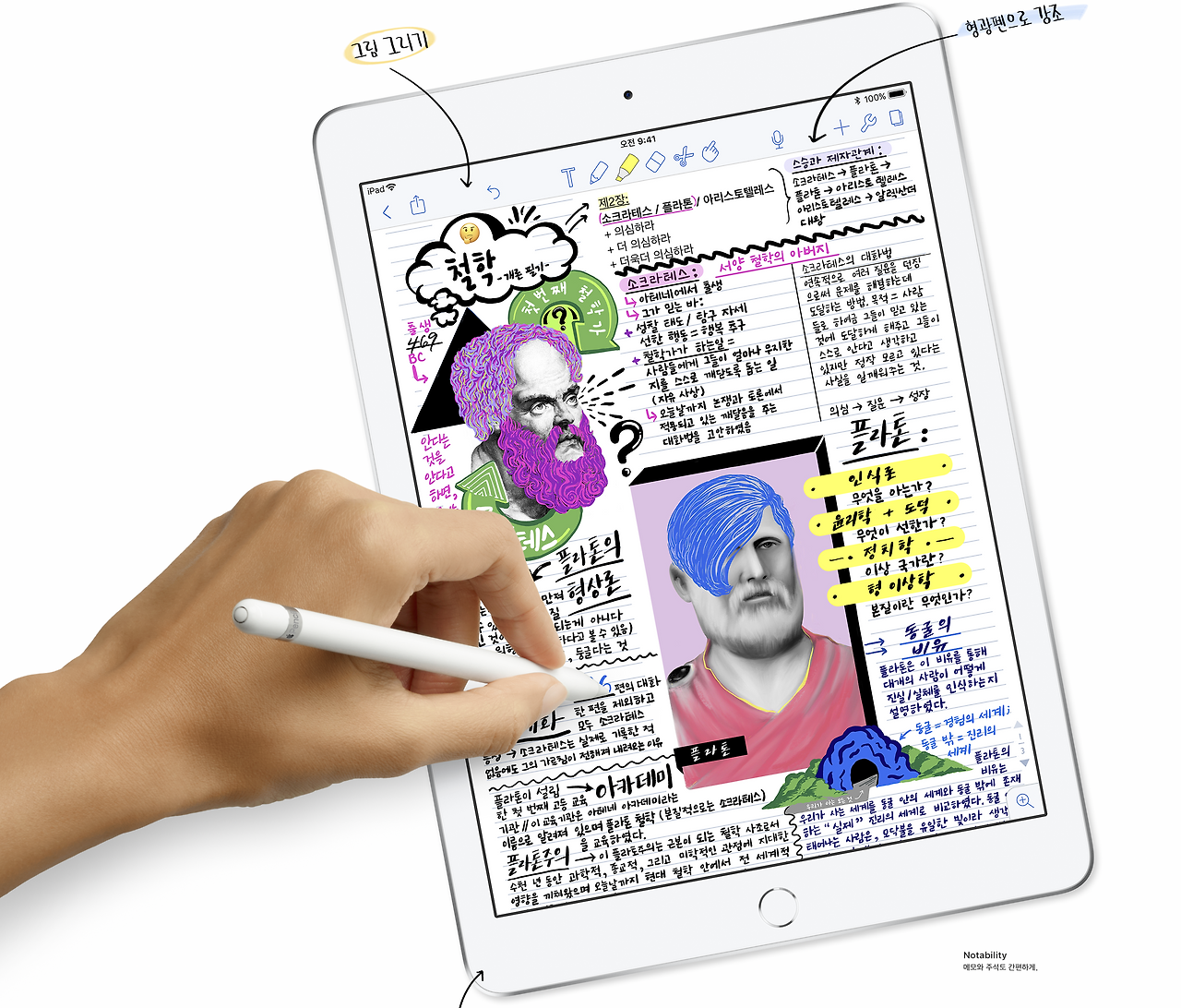 신형 아이패드는 애플 펜슬을 통해 필기 노트가 가능합니다. 실제 아이패드에 애플 펜슬을 사용해 본 분들은 느끼셨겠지만 필기감이 정말 좋습니다. 학교에서 학습 필기용으로 쓸 정도의 놀라운 경험을 할 수 있지요.