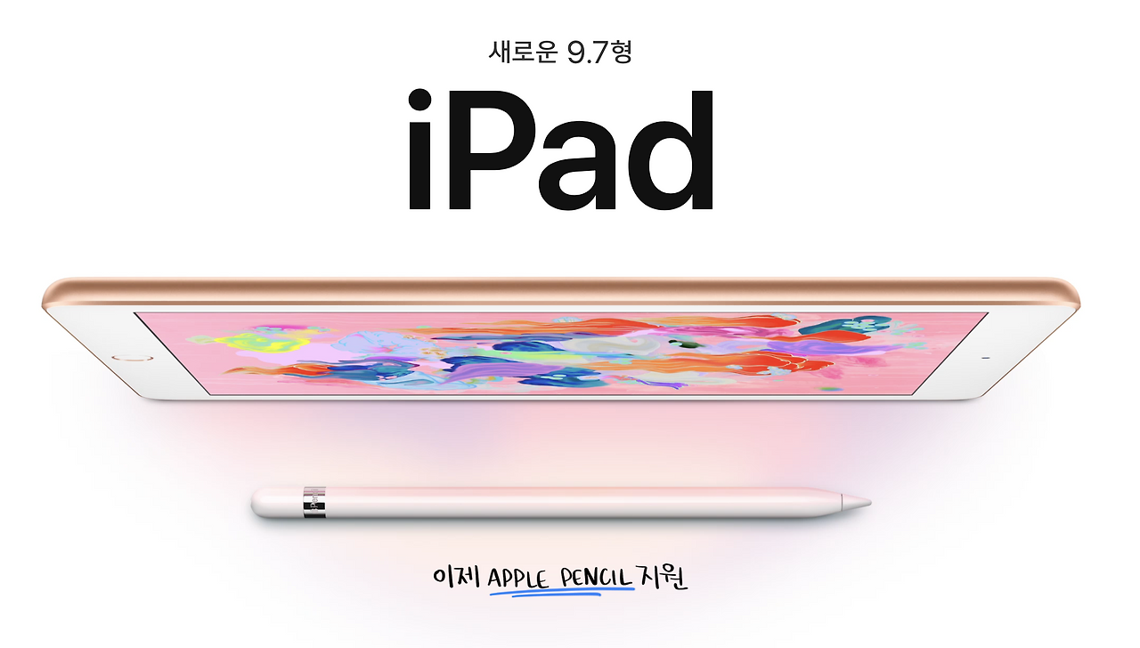 용량은 32GB, 128GB로 출시되며 컬러에는 실버, 스페이스 그레이 외에 골드가 새롭게 추가되었습니다. 국내 출시 가격은 Wi-Fi 모델의 경우 430,000원 / 550,000원, 셀룰러 모델은 600,000 / 720,000원입니다. 기존 아이패드 대비 가격이 저렴해지긴 했지만 그래도 비싸긴 합니다. 또한 추가적으로 애플 펜슬까지 구입하게 되면 역시나 부담을 느낄 수밖에 없는 가격입니다.(애플 펜슬 가격은 119,000)