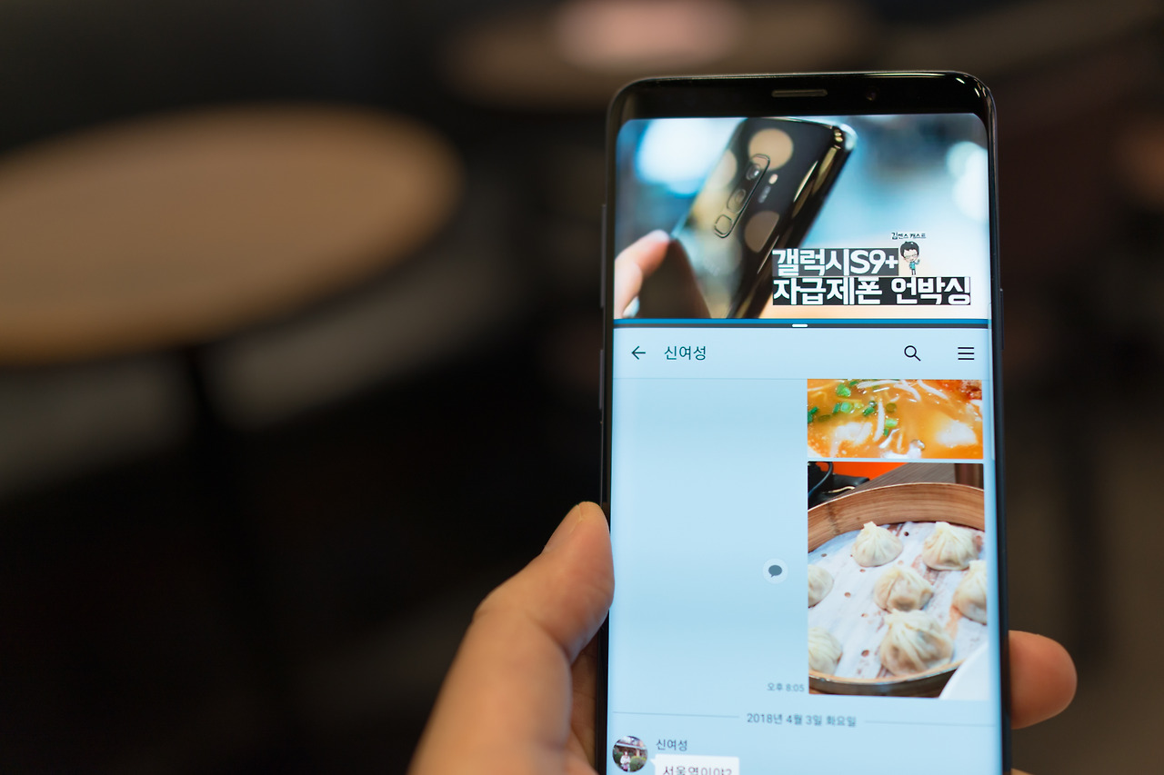 카페에 앉아 우리만의 음악을 듣겠다! 그런 분들은 갤럭시S9 플러스의 듀얼 오디오 기능을 사용해 보세요.