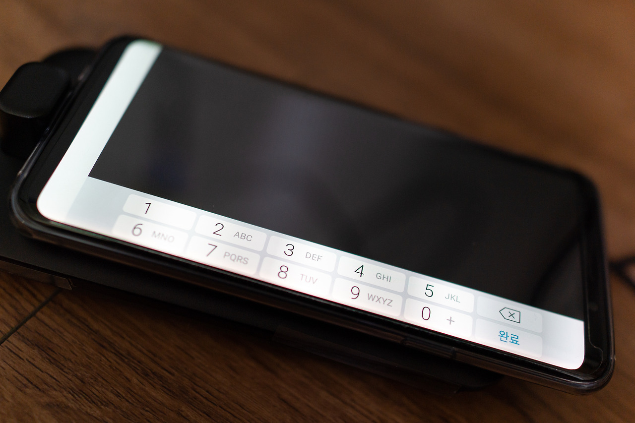 삼성 덱스 모드에서 갤럭시S9 플러스 화면은 터치 패드로 사용되고 문자 입력이 필요할 때에는 터치 키보드를 띄울 수 있습니다. 처음 사용할 때에는 터치패드 감도가 어색했는데 설정에서 별도 조정할 수도 있고 적응하면 괜찮아지더라고요. 마우스만큼 편하지는 않지만 그래도 쓸만합니다.