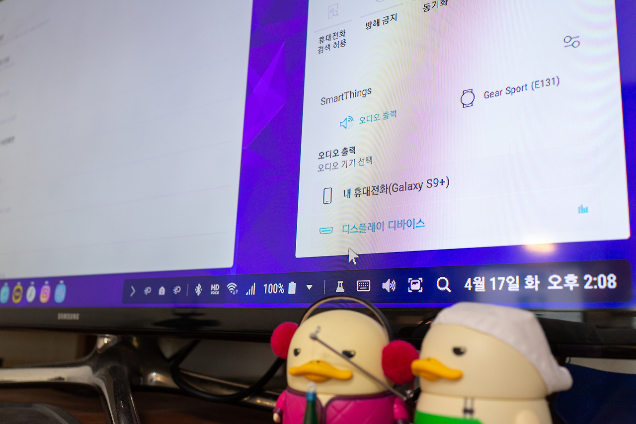 한가지 더! 소리 출력의 경우 갤럭시 S9 플러스의 듀얼 스피커로 들을 수도 있지만 더 크게 TV 스피커로 듣기 위해서는 화면 하단 오른쪽 배터리 상태 표시 옆 아이콘을 누르면 오디오 출력 항목이 나옵니다. 여기에서 변경할 수 있습니다. 변경하지 않으면 사운드는 갤럭시 S9 플러스로 기본 출력됩니다.