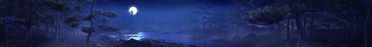밤하늘 달빛이 비치는 고요한 물가입니다.