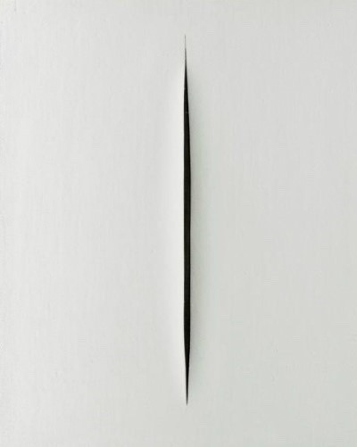 21세기 화단의 앙팡테리블(enfant terrifle) 작가 J씨. 회화의 형을 탐색하는 데에 주력해 왔던 그가 최근 그가 형을 초월하여 형이상으로 비약하고 있다. 화폭에서 보이는 것은 위에서 아래로 찢어진 날카로운 칼 자국뿐이다. 여성의 성기를 닮은 저 캔버스의 틈은 언젠가 모든 존재자를 낳은 세계의 자궁이다. 찢어진 틈으로 입을 벌린 저 어두운 존재의 심연을 보라. 하이데거가 말한 존재와 존재자의 존재론적 차이가 저기에서 충격적으로 시각적 직관성에 도달한다.