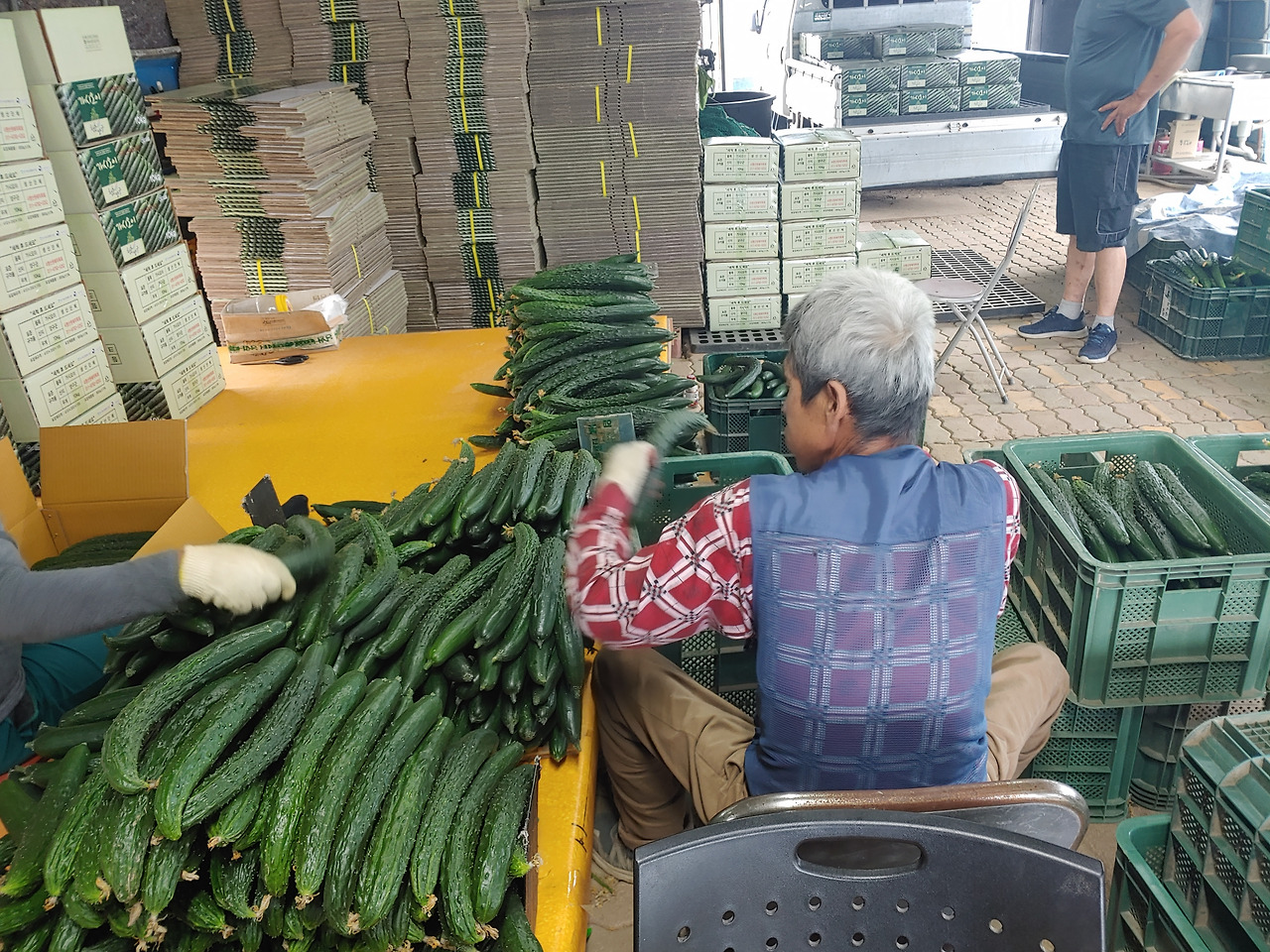 <오이를 포장한 박스를 차에 싣는 징기 씨>