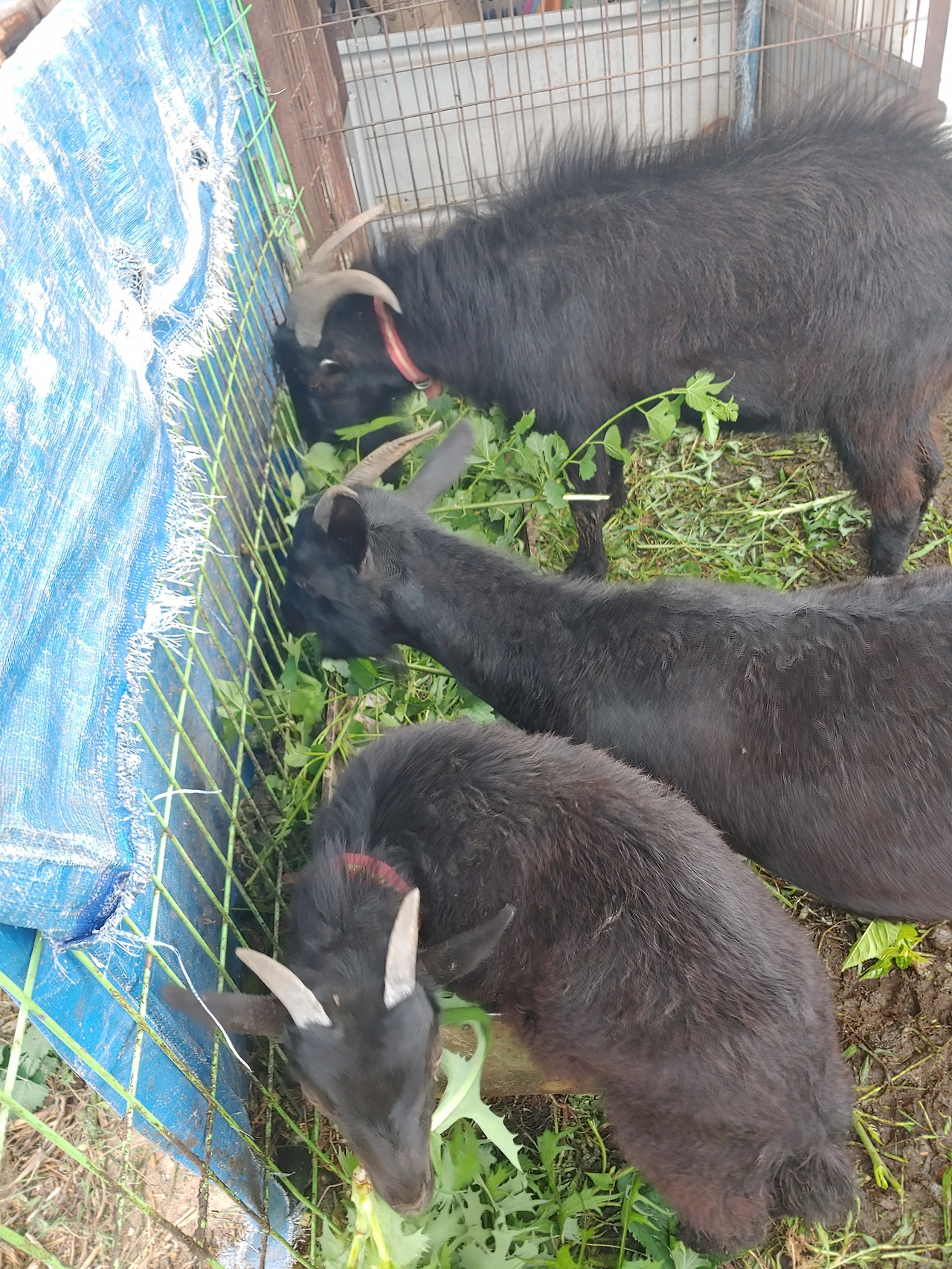정씨 아저씨는 오이 농사를 지으면서 염소와 토끼도 키우고 있습니다. 염소나 토끼가 큰 돈벌이는 되지 않지만 그래도 가축을 키우는 건 농가의 관습입니다. 나도 가끔 뽕나무나 칡덩굴을 끊어다 주는데 이 염소 세 마리를 볼 때마다 착잡합니다. 중간에 있는 암컷 염소는 제일 위에 큰 염소의 어미입니다. 어미가 낳은 새끼인 거죠. 제일 아래쪽에 있는 작은 새끼는 지난겨울에 낳았는데 그 아비는 제일 위에 있는 수컷 염소입니다. 그러니까 수컷 염소는 암컷 염소의 아들이면서 남편이고, 새끼 염소한테는 형이면서 아비 염소가 되는 셈입니다. 근친 교배로 이루어진 거죠. 염소 농가에서는 새로울 게 없는 흔한 일이라고 합니다. 그게 염소 농가의 문제이기도 하고요. 수컷 염소는 시도 때도 없이 제 어미이자 아내인 암소 염소와 동생이면서 아들인 염소를 들이박기 일쑤입니다. 폭력 같지만 서열을 정하는 거라고 봐야겠죠. 잠을 잘 때는 세 마리가 조용합니다. 서로 기대고 잘 잡니다. 푸른 풀을 먹고 까만 똥을 싸는 독특한 소화기 구조만큼이나 가족체계도 복잡합니다. 올가을에 또 새끼를 낳을 예정이라고 하는데 염소 가문은 또 그렇게 가문을 이어갑니다.
