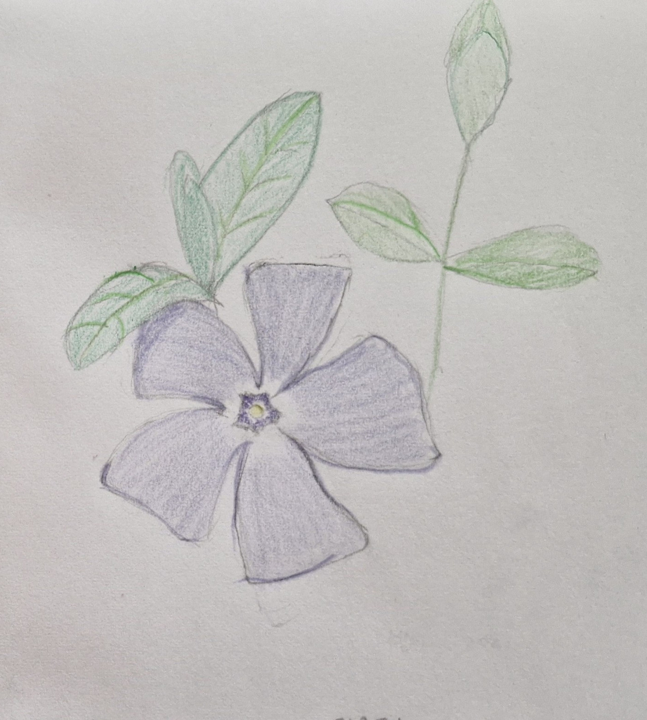 사진 찍어온 빈카를 그리기 위해 다시 들여다본다. 모든 꽃잎이 휘어져 나오는 각은 섬세하게 같지만, 꽃잎 한쪽은 각지고 한쪽은 둥글다. 모든 꽃잎의 길이가 살짝씩 다른데, 모여서 한가운데는 정오각형 띠가 선명하게 남는다.