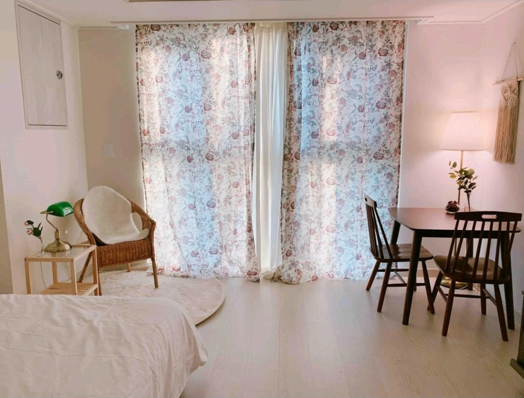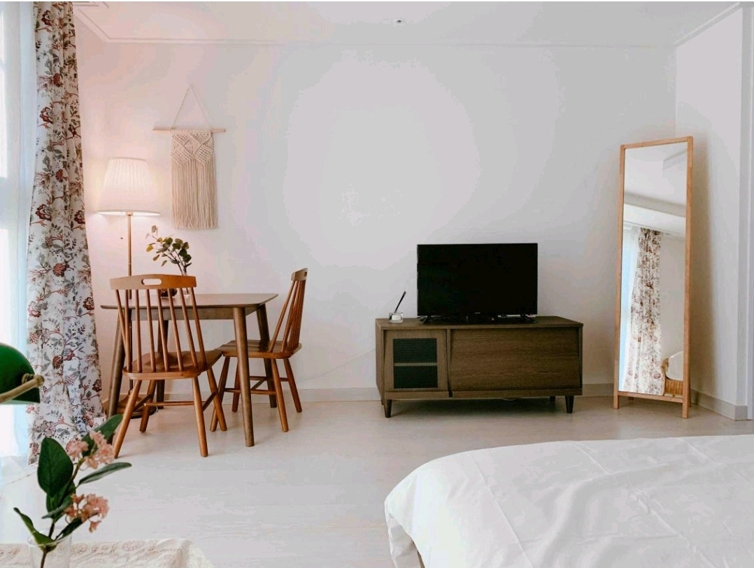 하지만 현실적으로 현재에는 불가능하기에, 2년 전 여름, 깔끔한 숙소를 잡아 친구와 함께 여행을 떠났었다. 바깥을 즐기는 대신 숙소를 최대한 즐기자며 실내 테마를 잡고 떠났던 짧은 여행이었다. 그래서 무엇보다 숙소를 선정하는 데에 신경을 많이 썼다. 나는 이상하게도 여행 계획을 짜는 과정 중에는 항상 숙소를 선정하는 과정이 가장 설레고, 여행을 다녀와서도 관광을 다녔던 시간보다 숙소에서의 시간들이 기억에 더 오래 남는 편이다. 보통의 여행을 갈 때도 이런데, 하물며 실내 테마로 떠났던 이번 여행은 얼마나 더 설렜을까. 친구와 나 모두 공간의 분위기를 중요시했기 때문에 커튼 하나, 테이블 하나까지 꼼꼼히 살피며 숙소를 정했다.