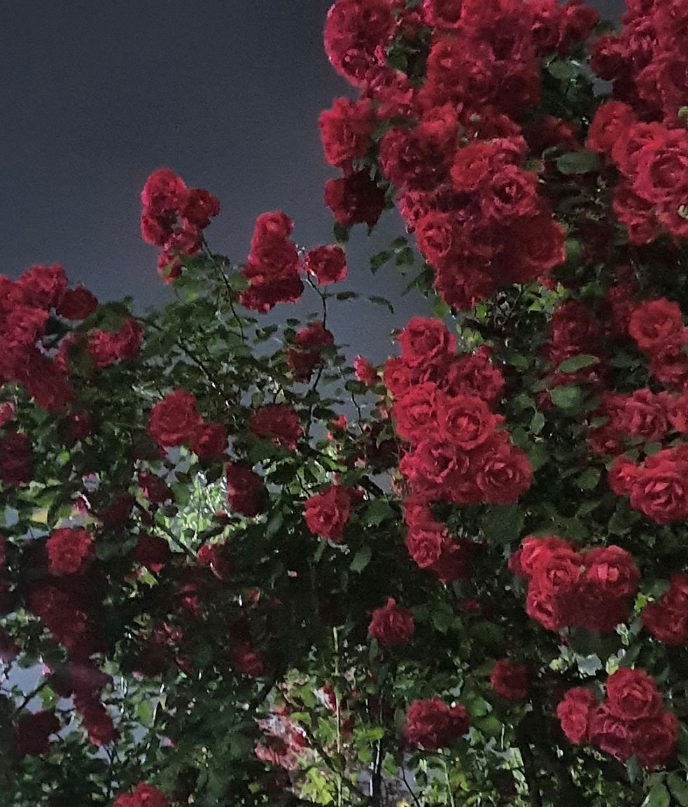 흐드러지게 핀 오월의 장미는 넋을 놓을 만큼 아름답다. 붉고 선명한 꽃잎은 햇빛 아래서도, 달빛 아래서도 싱그러이 제 존재감을 드러낸다. 너무도 흔하고 익숙한 꽃이라 때론 진부하게 느껴지지만, 어느 오월의 밤에 마주한 장미 앞에서 그 생각이 무색해지고 말았다. 산책하던 발걸음이 느려지고 손은 주머니 속 휴대폰을 향했다. 짙은 코발트블루빛 하늘 아래, 초록 나무와 붉은 장미가 ‘찰칵’ 소리와 함께 작은 화면에 담겼다.