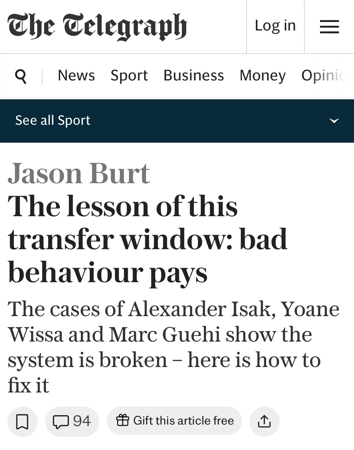 프리미어리그의 이번 이적시장을 관통하는 키워드 중 하나는 ‘태업’이었다. 뉴캐슬에서 리버풀로 이적한 알렉산더 이삭은 프리시즌부터 팀 합류를 거부했다. 브렌트포드에서 뉴캐슬로 이적한 요아네 위사는 이적을 위해 팀 훈련에 불참 통보를 했고, 이적이 불발되기는 했지만 웨스트햄의 루카스 파케타는 아스톤 빌라 이적을 위해 태업을 감행했다는 소식이 있었다. 이적을 위해서라면 기존 팀과의 계약과 팬들의 지지 따위는 전혀 중요시하지 않는 태도를 보여준다. 이러한 양상이 날이 갈수록 늘어가는 추세다.