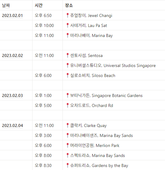 혹시나, 필요한 여행 정보를 위한 여행일정표