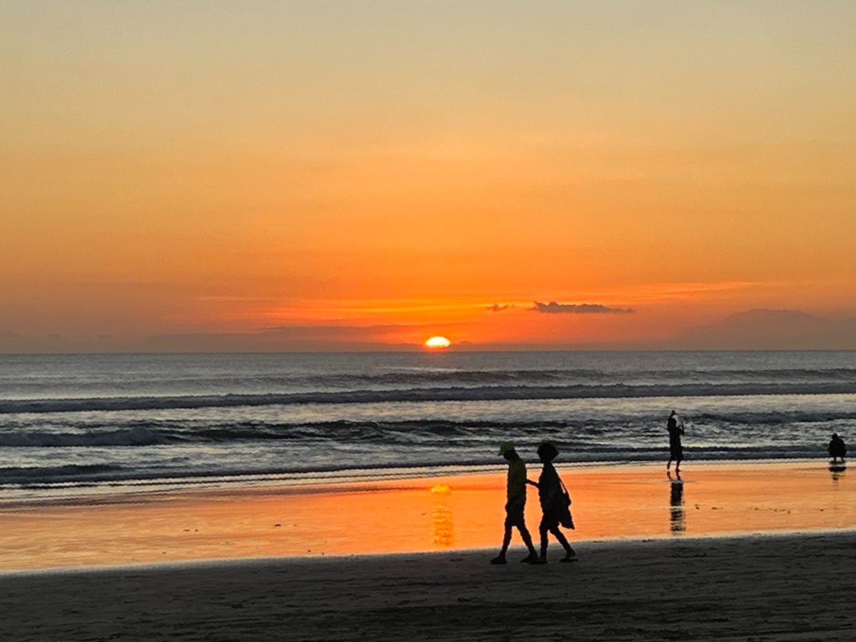 발리의 첫 감상을 서로 나누며, 주위를 둘러보며, 식사를 즐겼습니다.