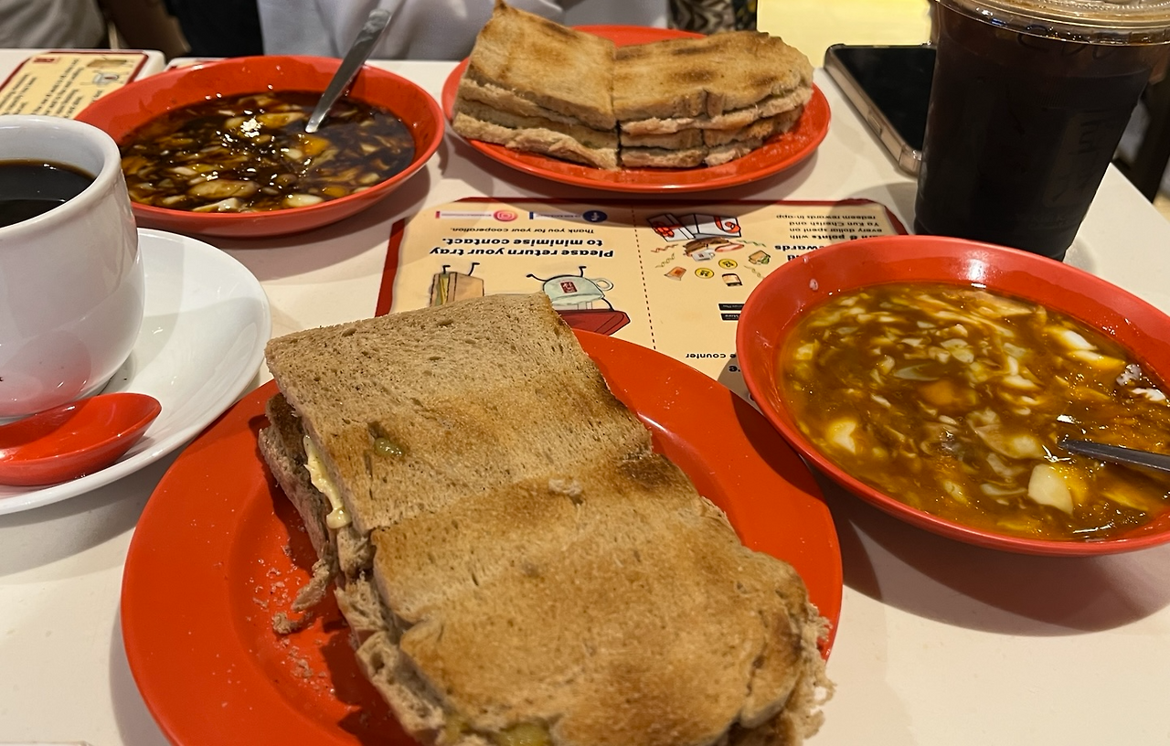 우리나라에서 먹는 카야토스트랑 느낌이 다릅니다. 현지에서 먹는 거여서 그럴까요? 빵이 더 얇고 바삭합니다.