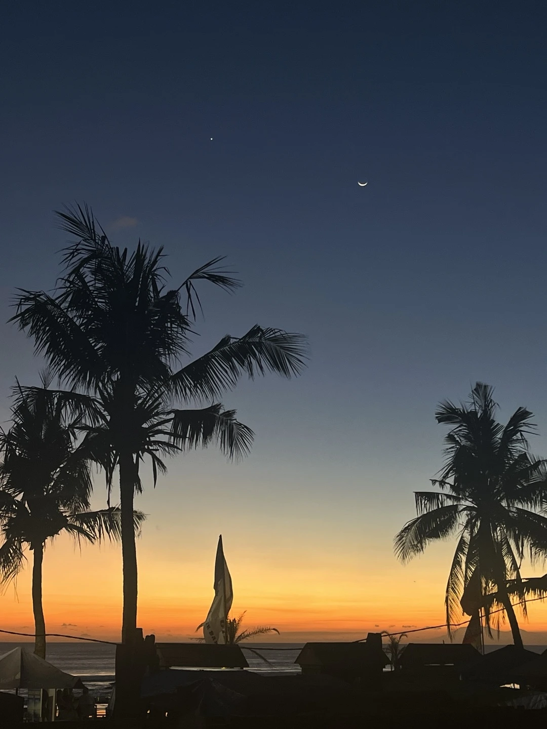 발리에서의 첫 아침이 밝았습니다. 청명한 날씨, 기분 좋은 스타트입니다!