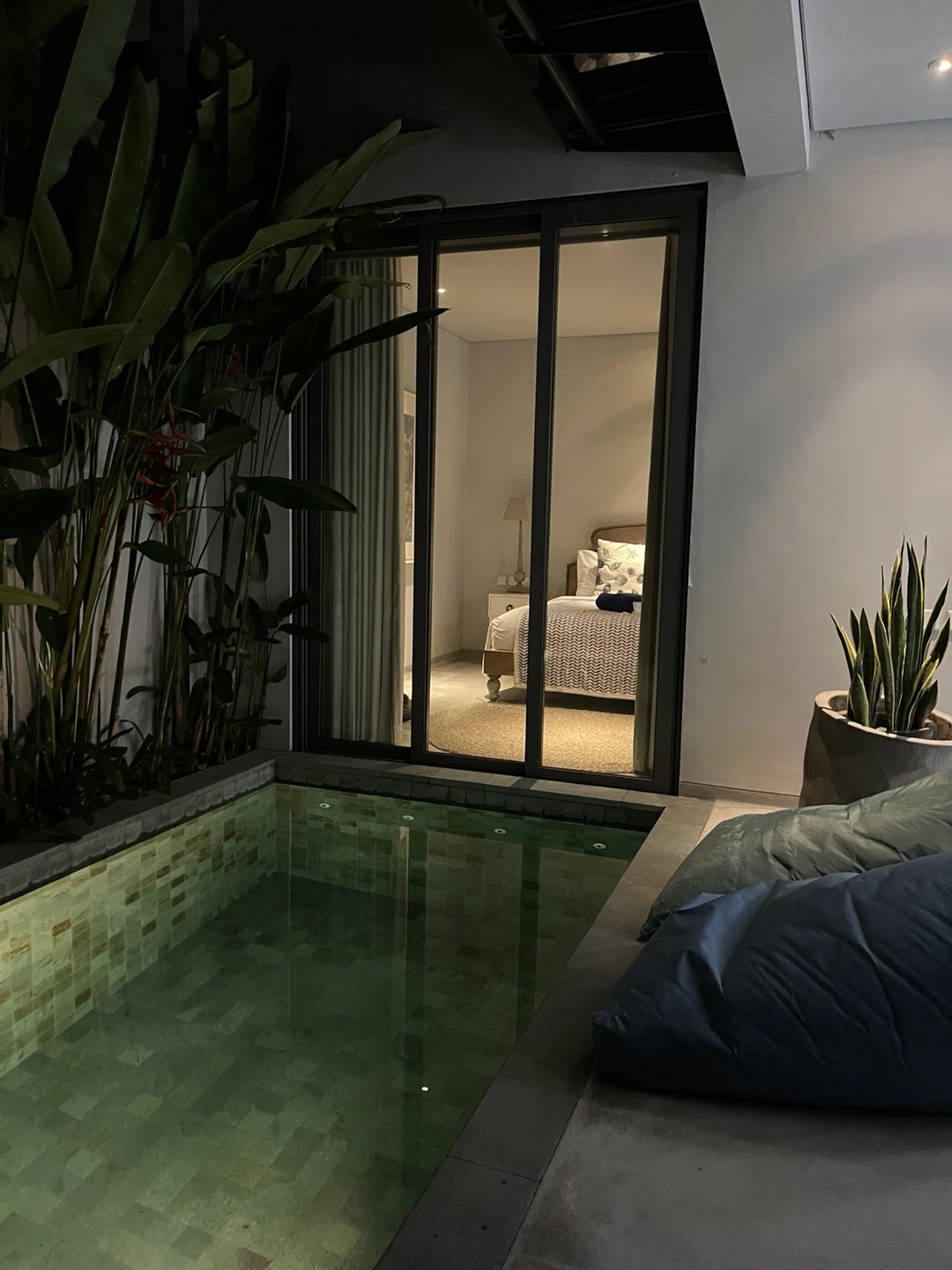 3박에 30만 원 조금 넘는 곳이었는데, 풀빌라에 포근한 침대, 넓은 화장실과 좋은 분위기까지 마음에 안 드는 곳이 없었습니다!