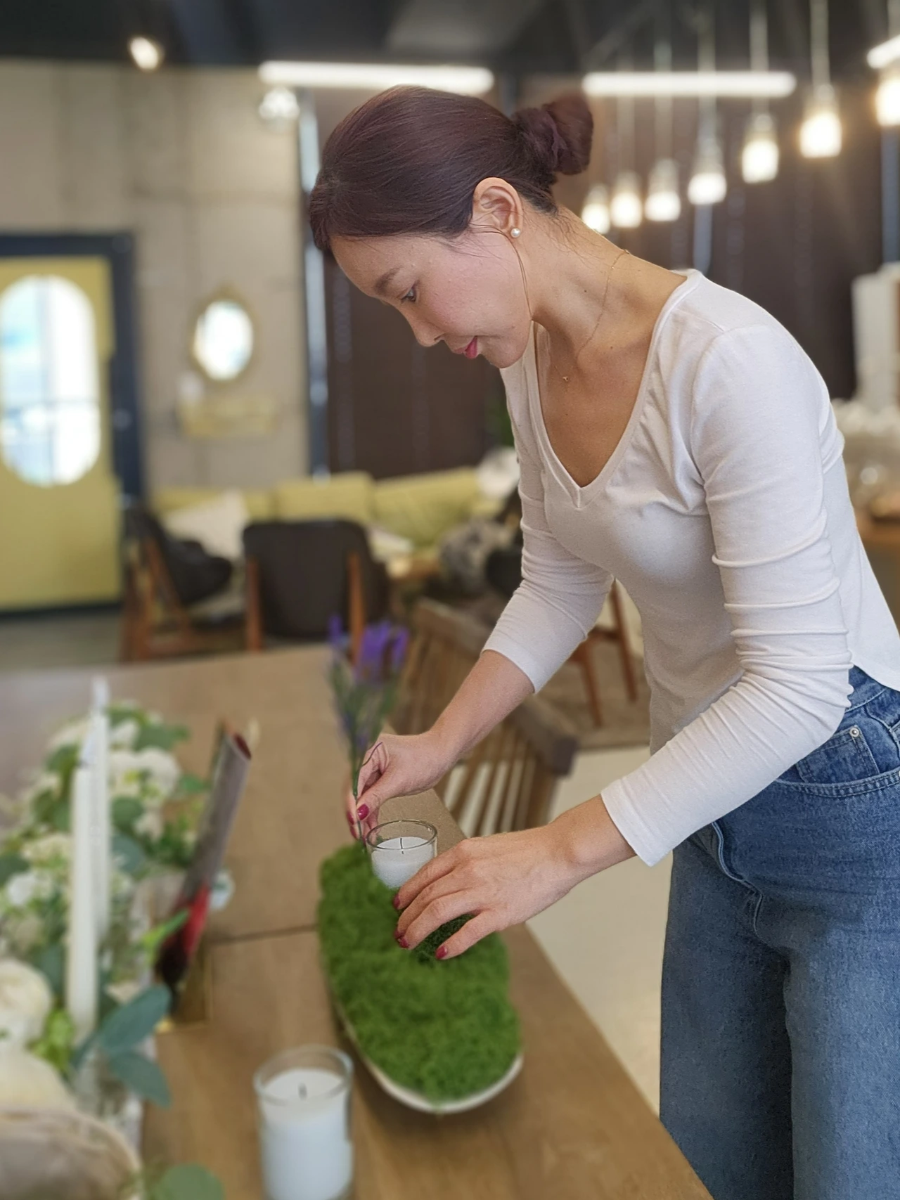 의자를 정돈하고, 꽃 한 송이를 꽂으며 고객님들의 미소를 상상하는 시간,
