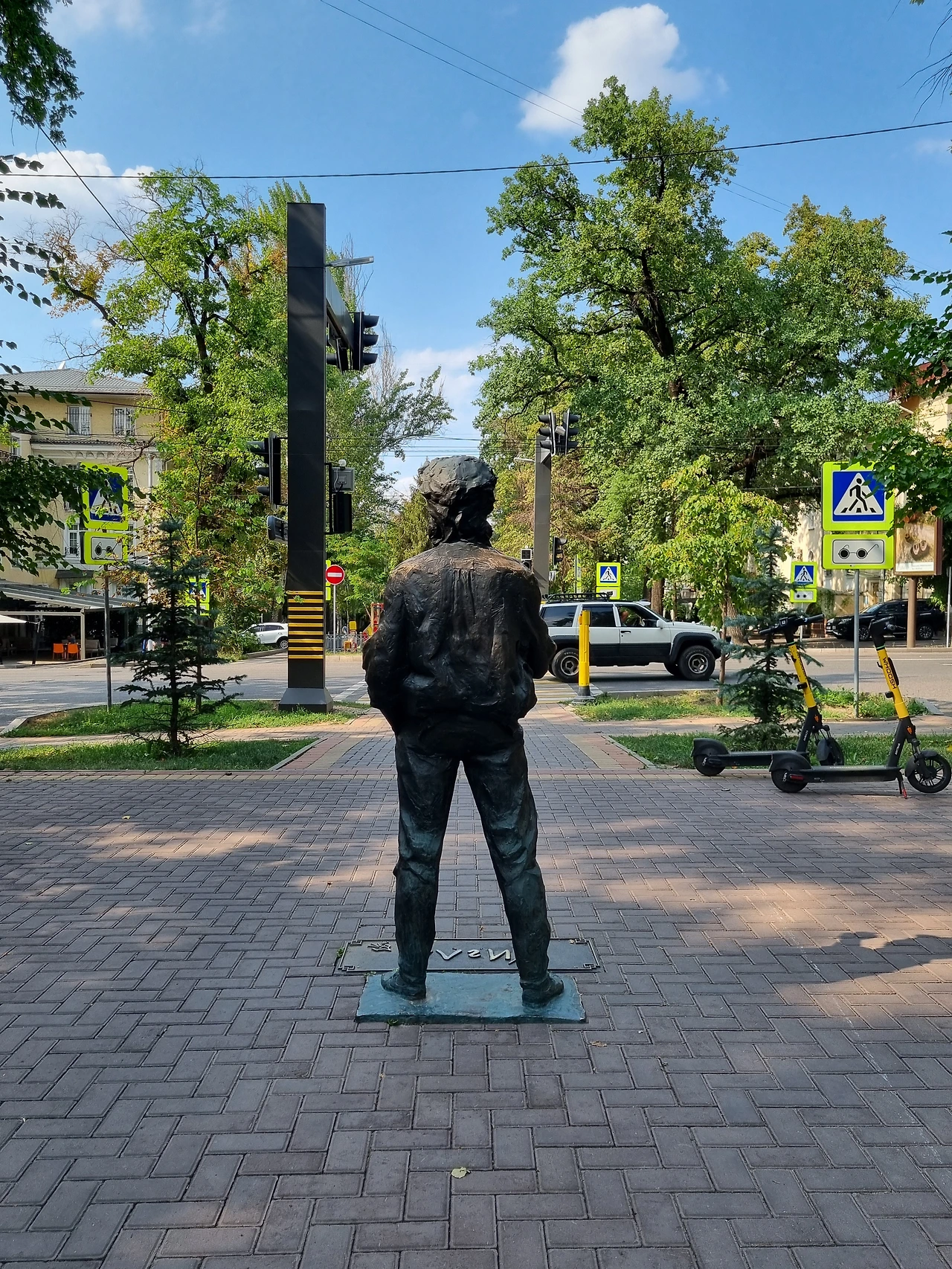 열심히 걷다 보니 어느덧 그의 동상 앞에 마주하게 되었다. 한 손에는 라이터에 불을 켜고 당당하게 서있는 빅토르 최. 그리고 그 옆에서는 그의 음악에 맞춰 기타를 연주하는 한 명의 기타리스트가 있었다.