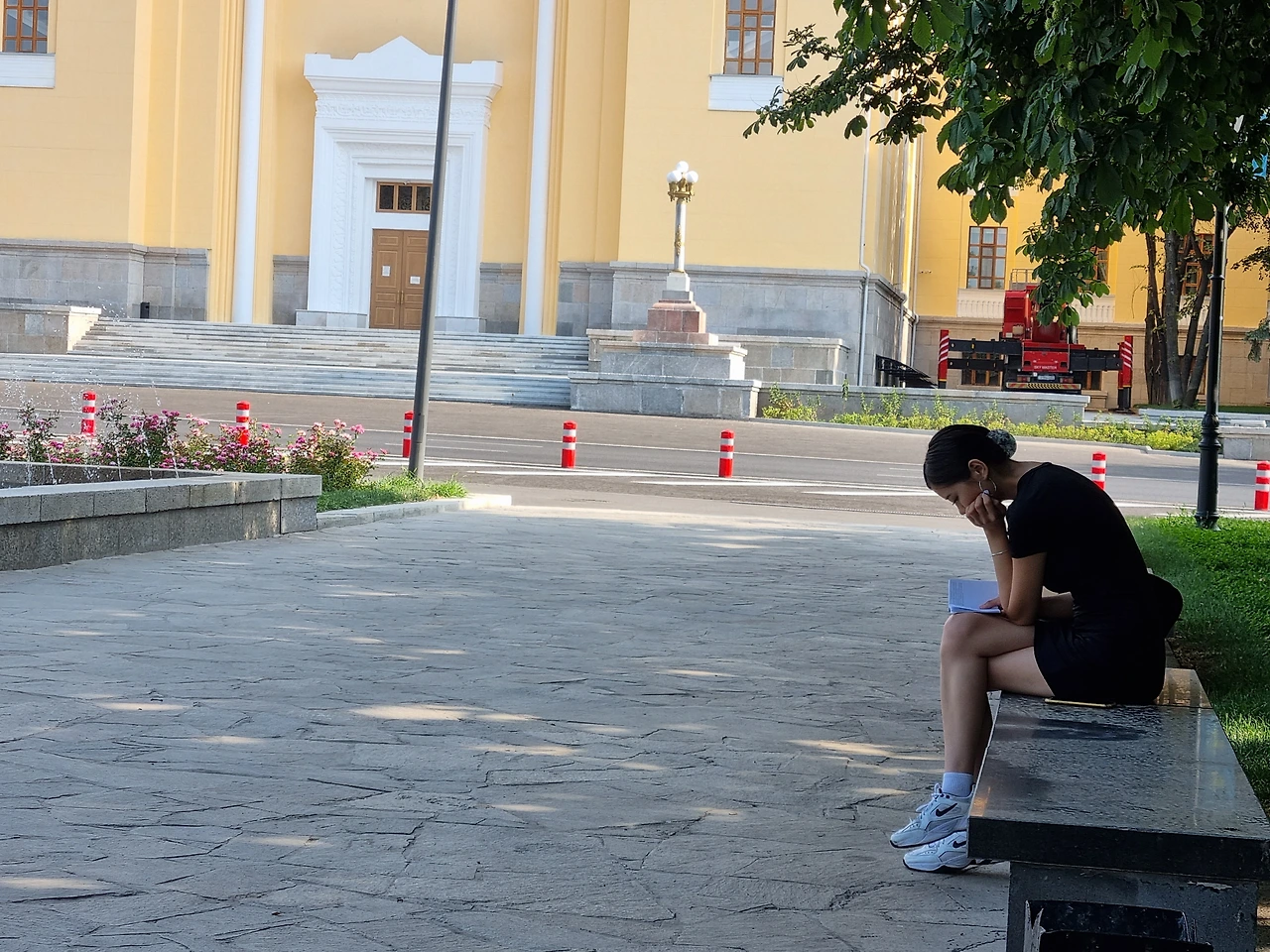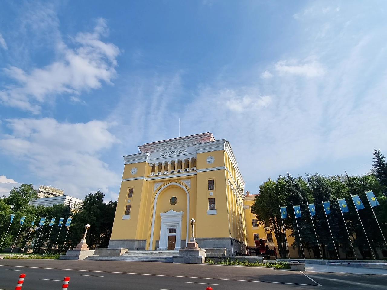 카자흐스탄국기들이 펄럭이고 있는 병아리색 관공서처럼 보이는 건물 앞이 나의 픽업 장소였다.