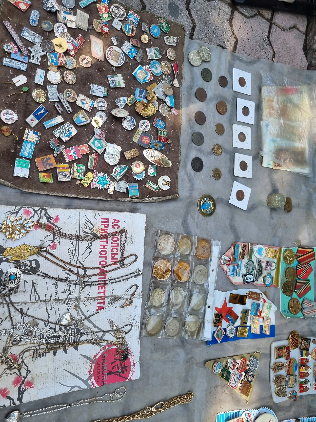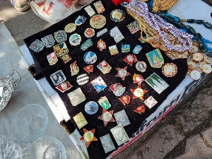 매우 이색적인 부분이 있었는데 자리 늘 깔고 판매하는 곳마다 여러 가지 다양한 모양의 배지를 팔고 있었다. 구소련 시대를 대표하는 인물들과 공산당 느낌 물씬 풍기는 분위기의 배지들.