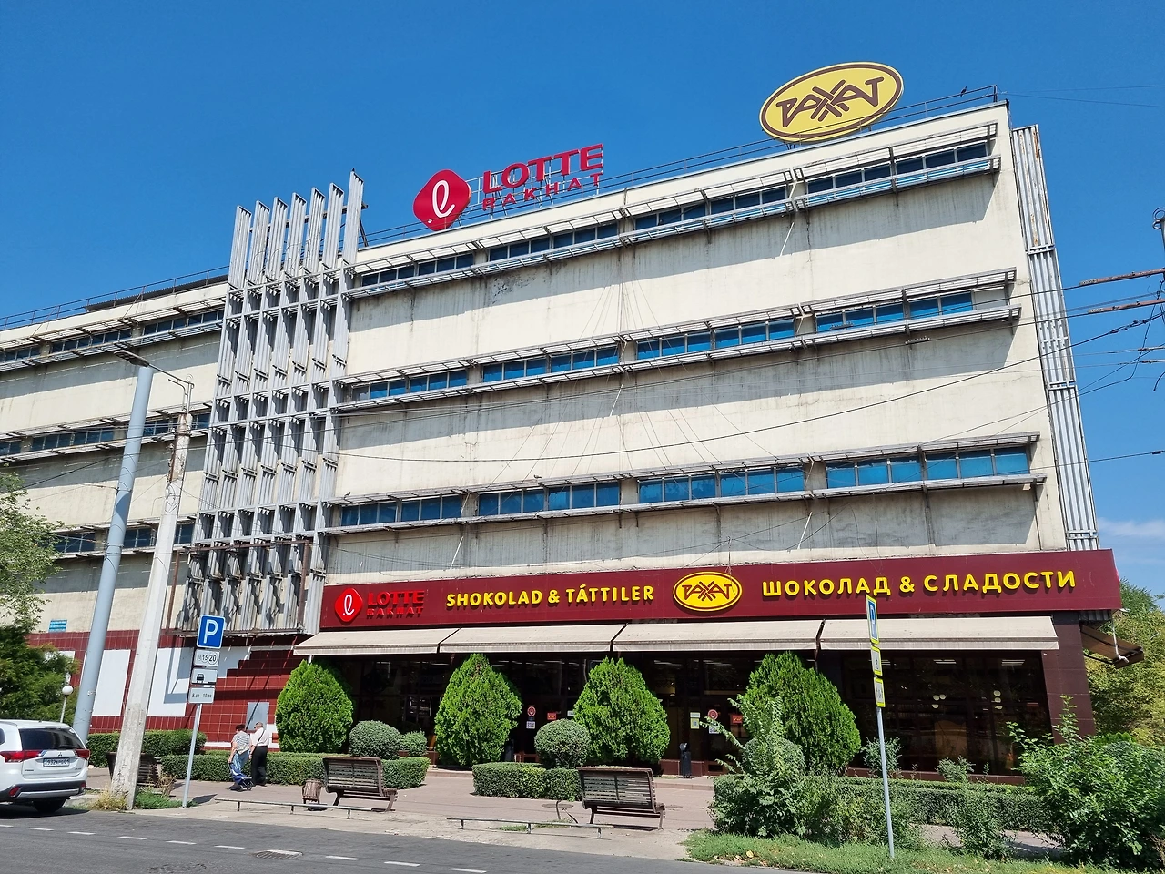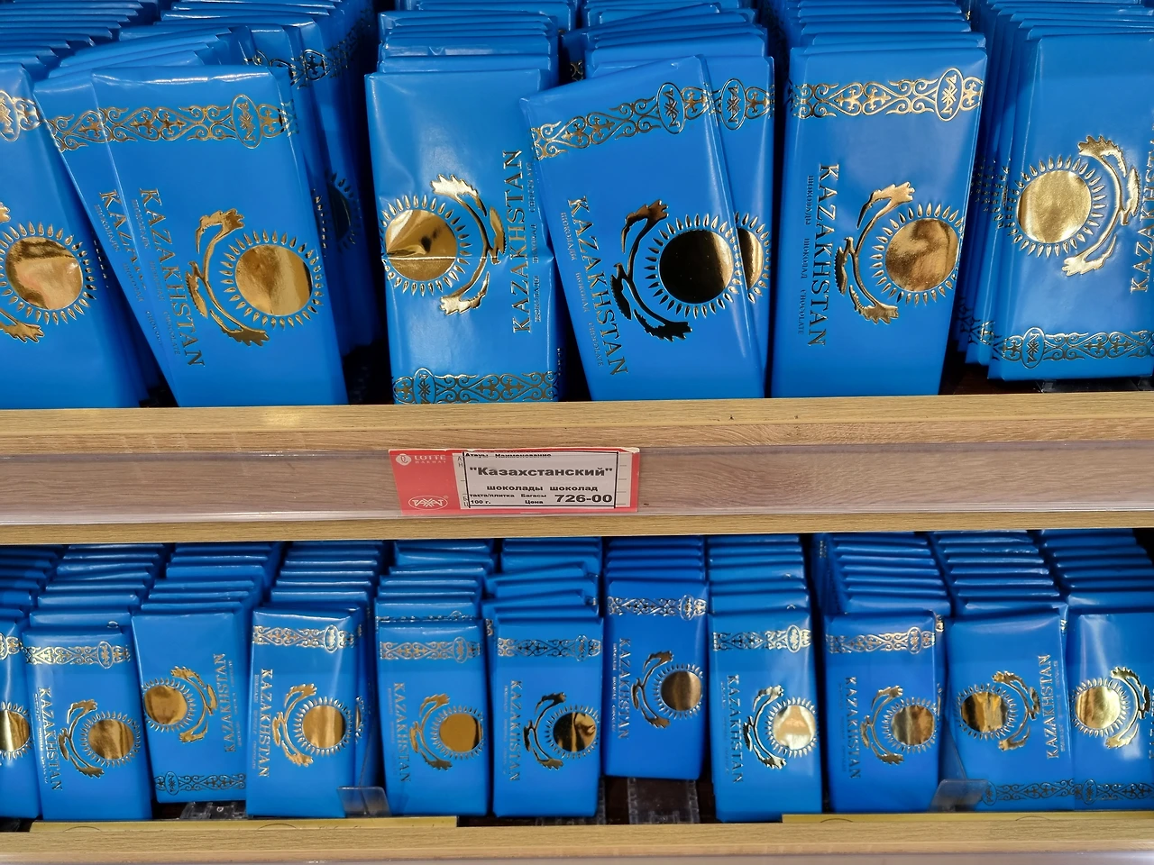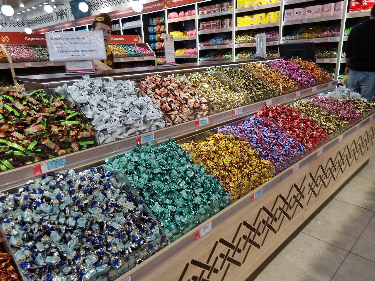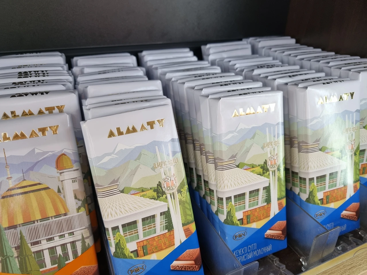 롯데 초콜릿 공장이다. 이곳은 우리에게도 익숙한 인기 있는 과자들을 판매하고 있을 뿐만 아니라 카자흐스탄국기 그림의 포장지로 덮여있는 초콜릿도 판매하고 있었다. 알마티를 방문하는 많은 여행객들이 기념품으로 초콜릿을 많이 사간다고 한다.