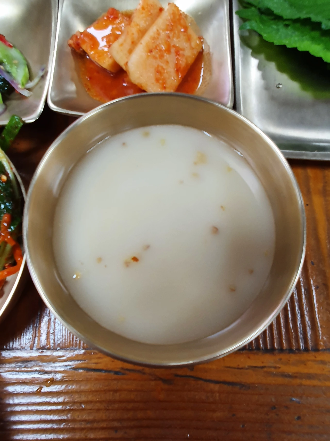 평소 알코올 즐기진 않지만 한 모금 마신 인삼 막걸리.