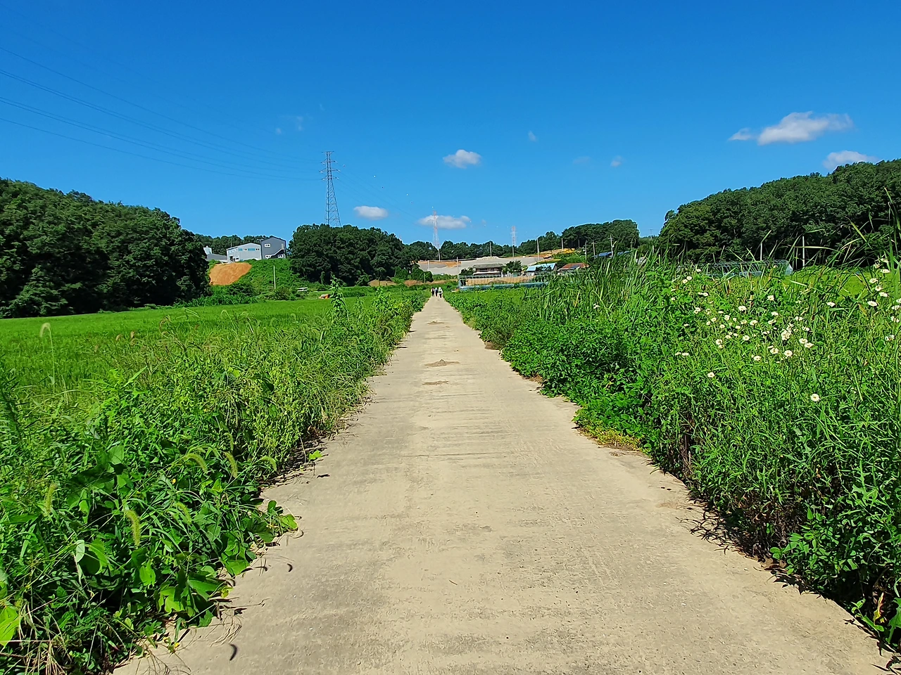 가을 문에 선 파란 하늘과 조각구름 아래 펼쳐진 오솔길 , 들길, 적당한 오르막 내리막길을 걸으니 평화가 따로 없네요.