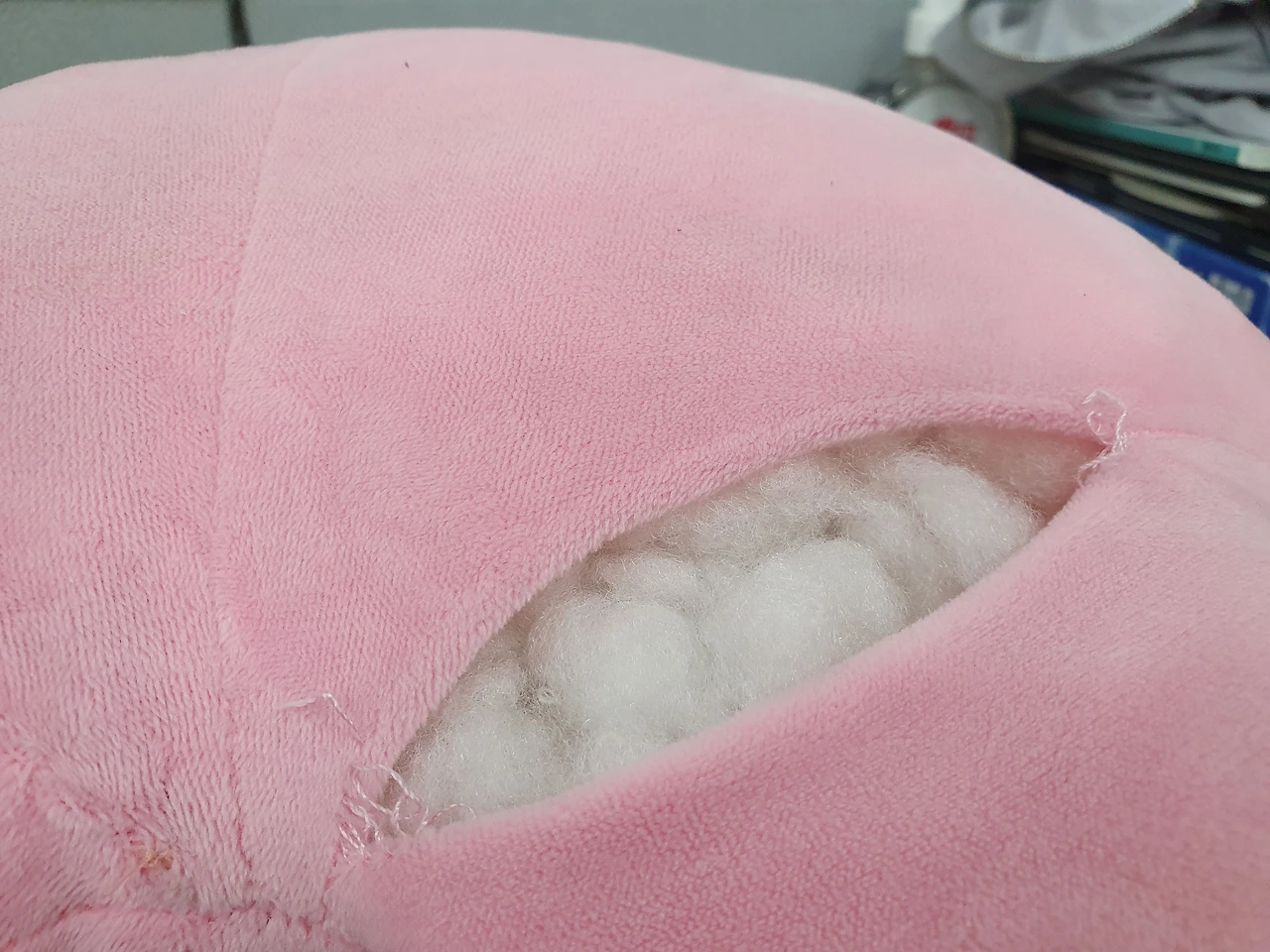 오늘은 산리오라는 캐릭터인데 양 귀의 연결부분과 얼굴 쪽이 뜯겨 있었다.