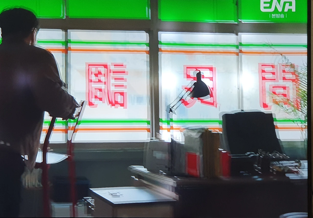 그 드라마에서 재벌 회장과 김영란을 돕는 변호사 '이 돈'이 회장의 자식들이 시킨 사람들에게 잡혀 있던 사무실의 창문에 선팅된 한자가 눈에 들어옵니다.