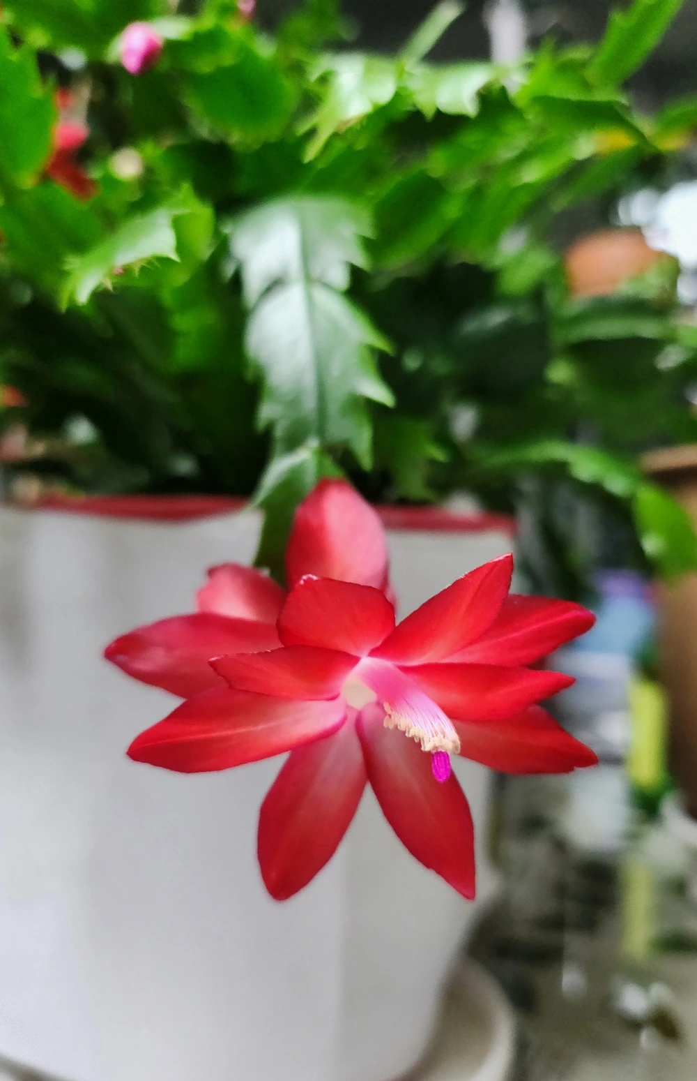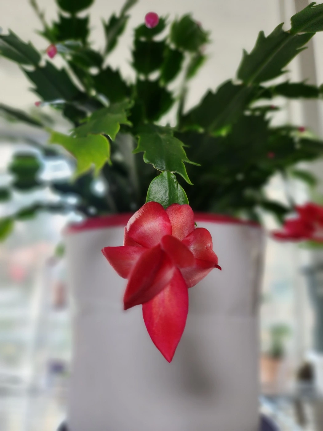 잎이 여러 개 늘어지니 이름이 게발선인장이라는 이름이 붙여졌는가 보다. 이름보다 꽃이 훨씬 예쁜데 아래 쪽으로 쳐지니 사진으로 예쁜 모습을 다 담지 못한다.