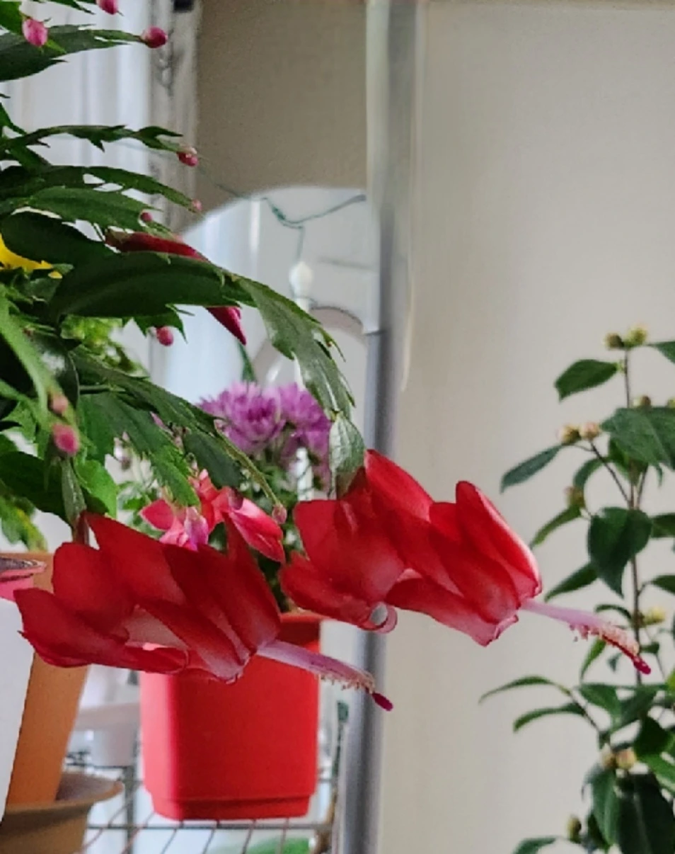 올해 1월에 아산 식물원에서 사 온 게발선인장이 11월부터 점같이 작은 꽃봉오리가 맺히더니 자라서 12월에꽃을 피우기 시작했다.