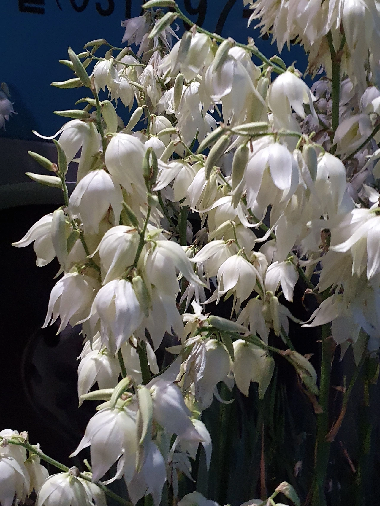 이름을 찾아보니 용설란과의 실유카라고 한다. 잎에서 실이 나와서 실유카라고 한다.