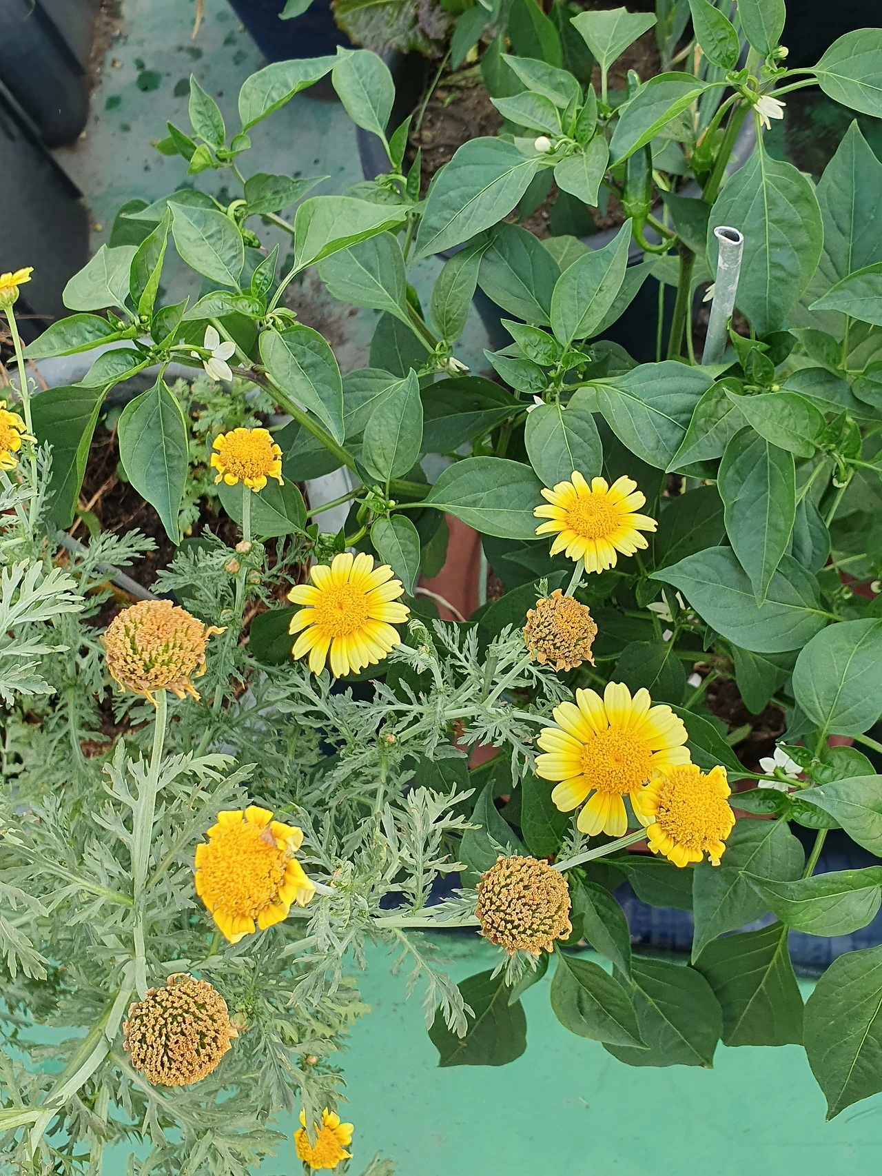 쑥갓은 노란 꽃을 피우고 늘씬하게 자라 있었다.