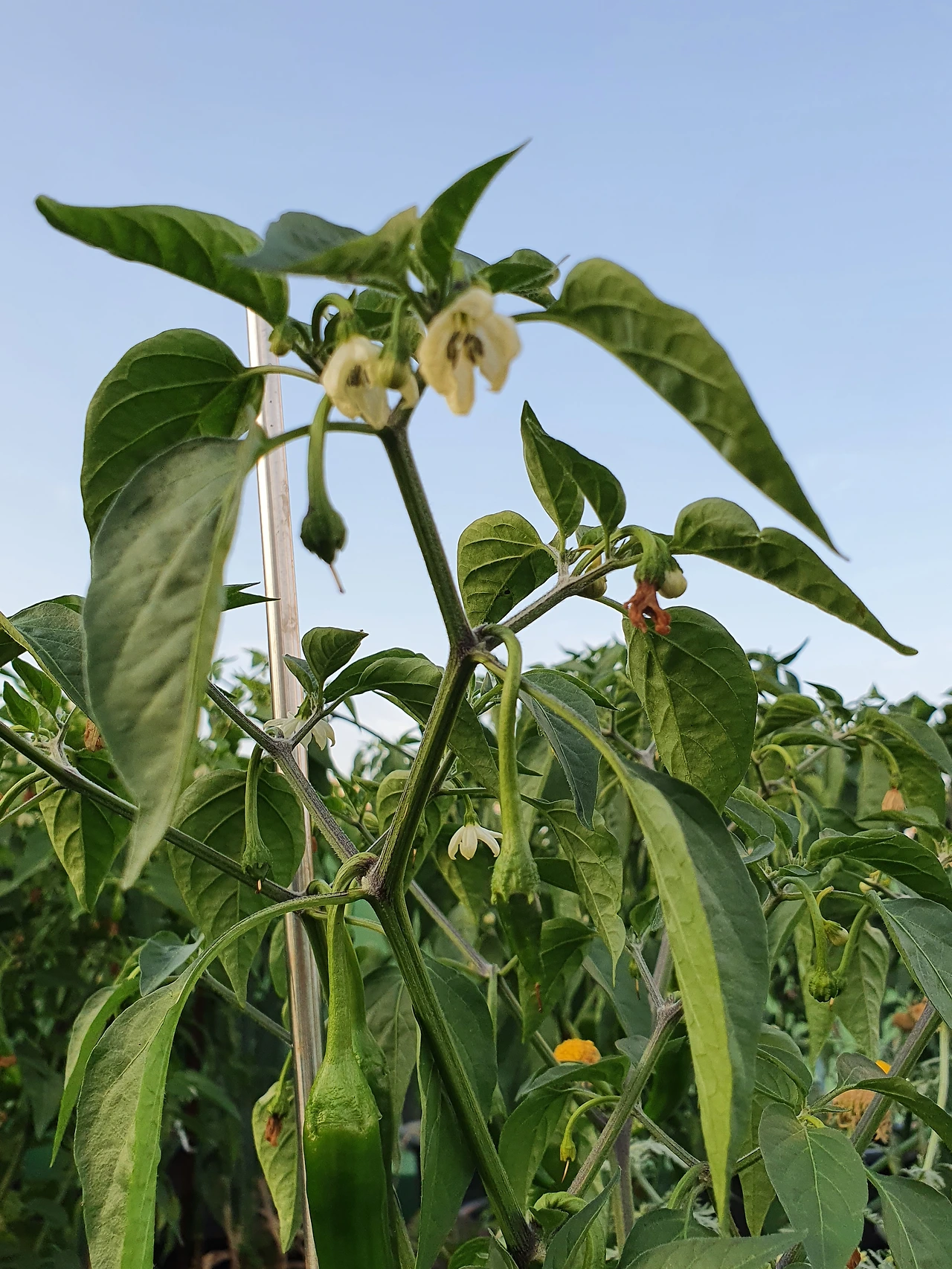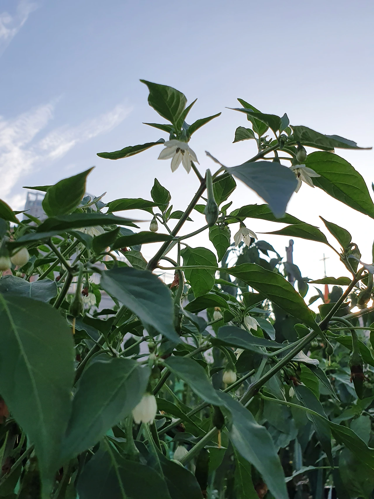 어머니께 예쁜 옥상정원을 만들어주고 싶다는 생각을 하며 친정에 가니 어머니는 옥상에서 파를 다듬고 계셨다. 전에는 몇 개뿐이던 화분이 이번에 가니 20여 개 이상되고 옥상의 절반 이상을 고추 화분이 덮고 있었다.