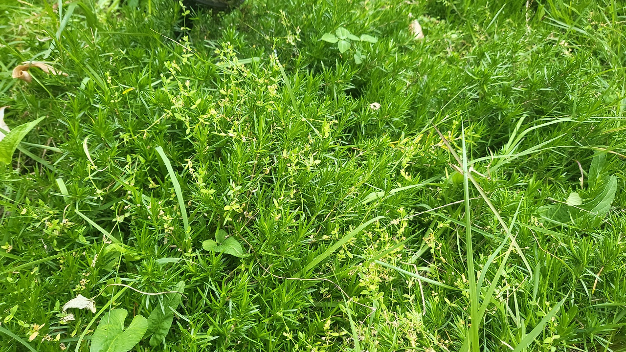 꽃잔디 위에 불쑥불쑥 제멋대로 올라온 잔디