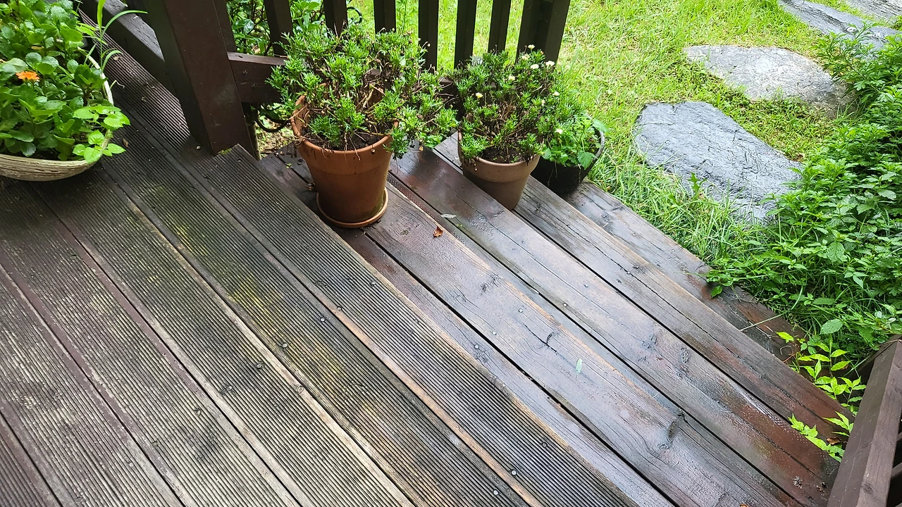 귀뚜라미인지, 사마귀인지 모를 연녹색의 곤충은 형체를 알아볼 수 없게 찢겨져 있었으며, 말 그대로 날개는 저쪽, 몸통은 이쪽, 다리는 그 옆에 나뒹글고 있었다. 눈살을 찌푸리고는 이내 나뭇가지를 구해 개미들을 물리치고 벌레 조각들은 데크 밖으로 옮겼다. 내가 한 것은 그저 청소 이상도 이하도 아니긴 했다.