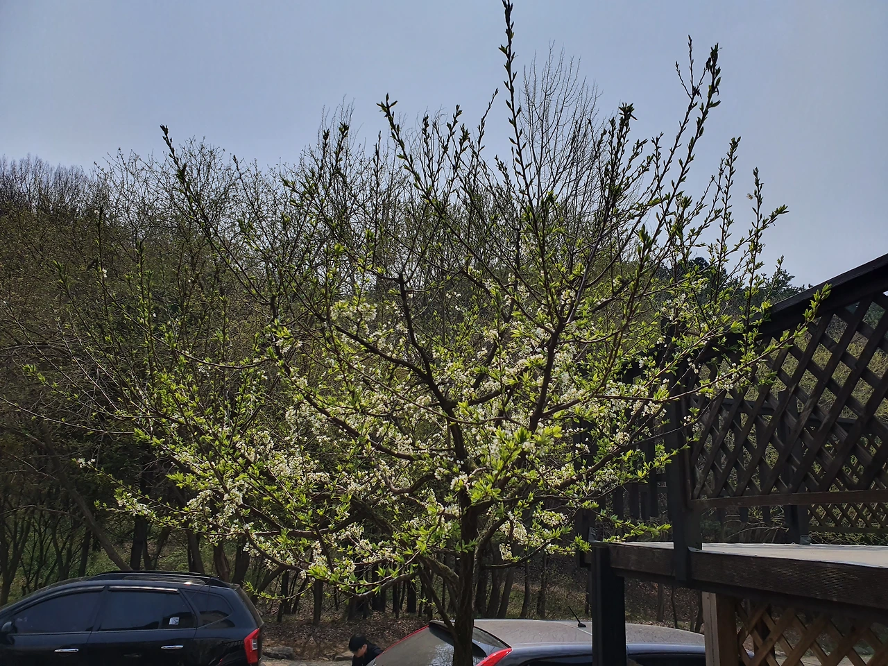 두번째 나무는 작년에 처음 만났다. 죽어가는 주목나무를 캐고 아빠가 직접 심어준 칠자화이다. 나무가 심겨진 자리가 거실 측면창 바로 앞이라 나무의 모양과 색은 창밖 풍광을 좌우했다. 그 전 주목나무 가지 사이로도 숲이 보였지만 주목나무 특유의 짙은 녹색과 드문드문 말라버린 갈색 잎이 뒤섞여측면 창은 언제나 좀 어두웠다. 우리집 앞 산이 연초록으로 반짝이는 봄철에도 말이다.