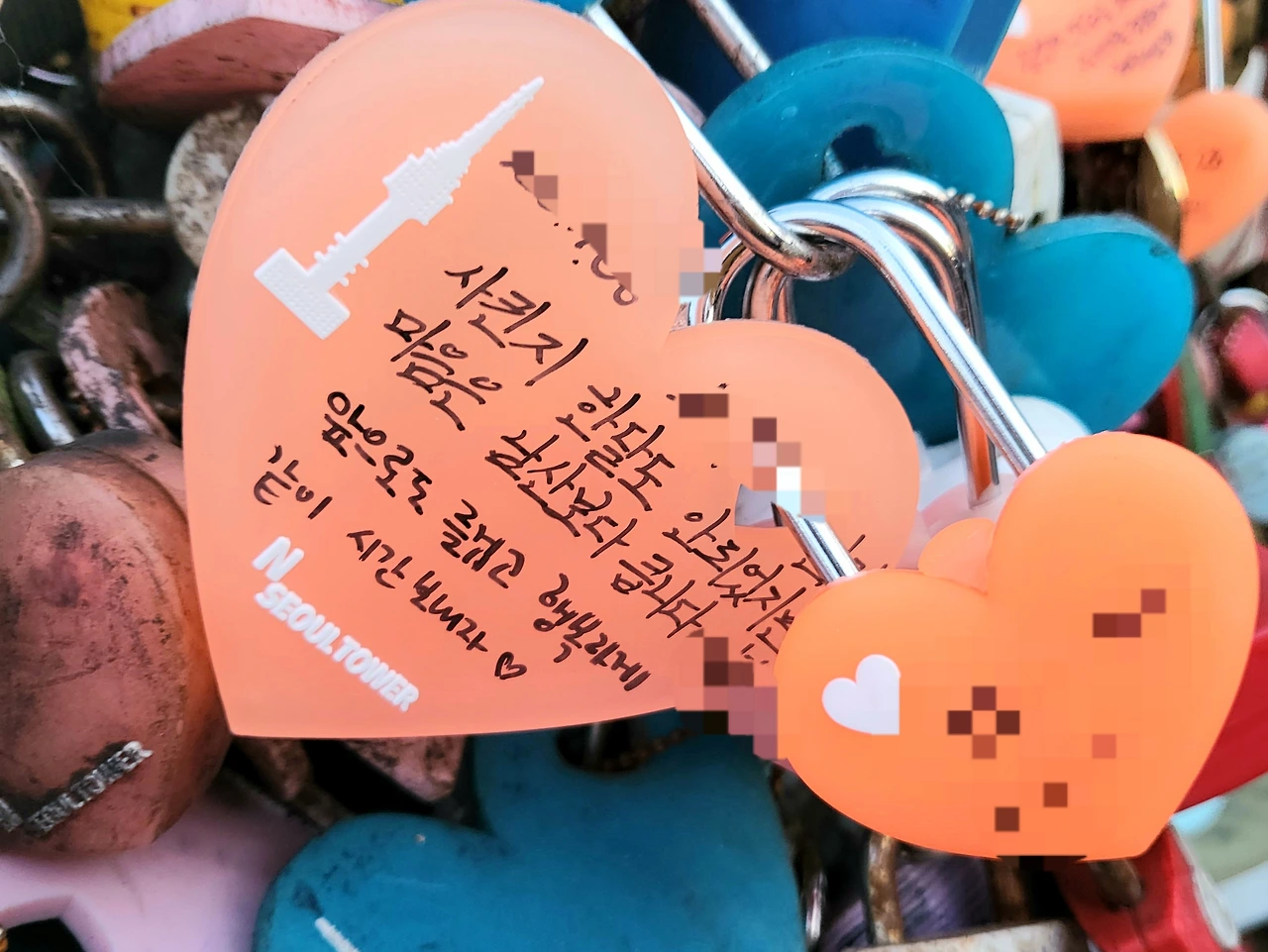 하지만 어제의 사랑이 가면, 오늘의 사랑이 온다. 많은 자물쇠 속에서 오늘자 따끈따끈한 사랑을 찾았다. 핑크색 하트 실리콘에 유성펜으로 적은 수줍은 고백. 한 달간의 만남 속 설렘이 그대로 전달된다.