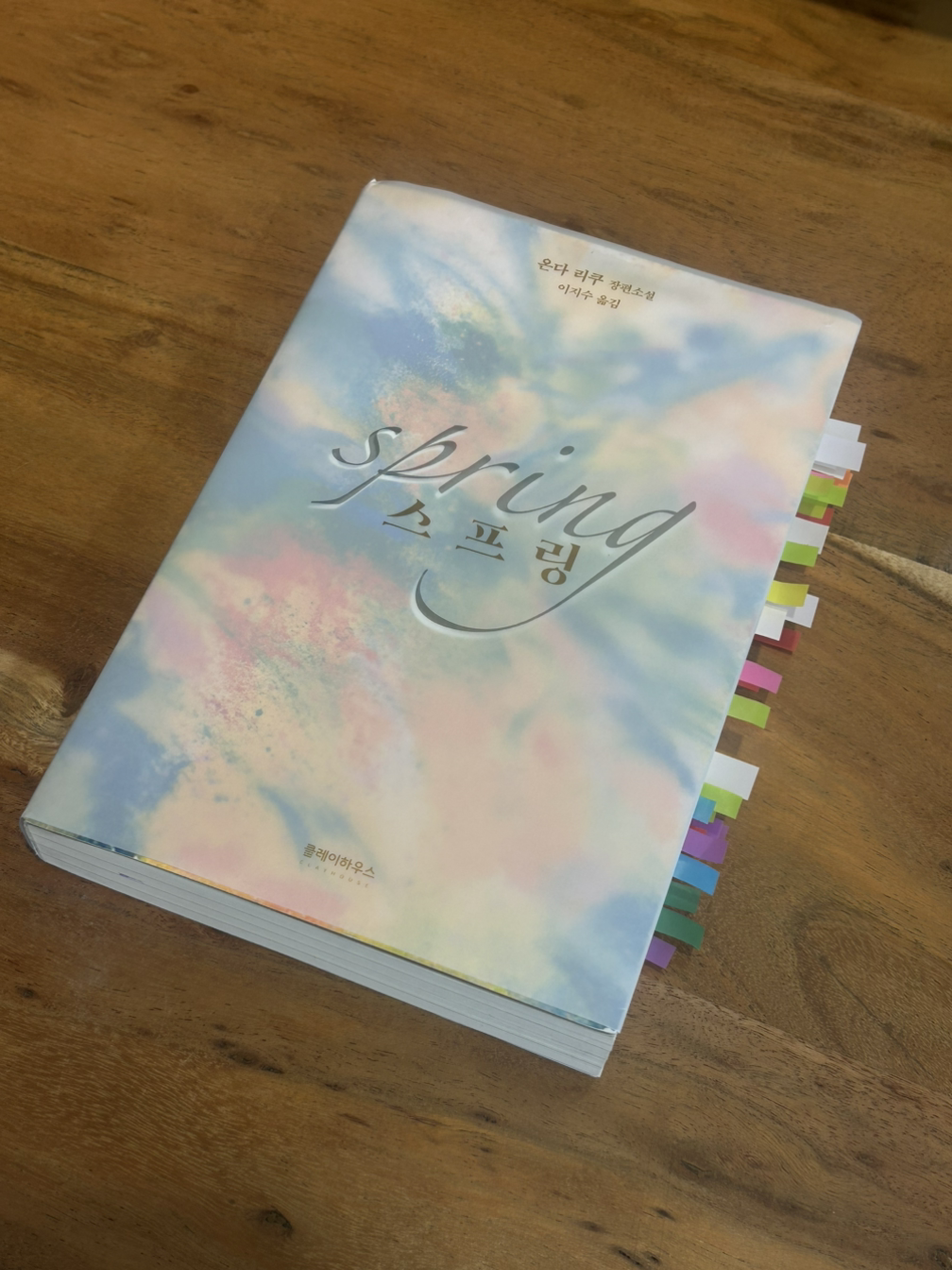 책을 받고서 든 생각은 '아 책 정말 예쁘다', '근데 너무 두껍다 큰일이다'였다. 클레이하우스 출판사를 워낙 좋아하는데, 역시 책도 예쁘게 만드는구나! 하는 감탄과 함께 이 두꺼운 책을 어떻게 읽어야 할까 하는 막막함. 아마도 <스프링>은 독서모임이 아니면 절대 내가 손 뻗지 않았을 분야의 책이었다. 나는 소설도 이제서야 재미 들여 읽기 시작하는 초보 독서가이기도 하고, 내가 관심이 없거나 모르는 분야에 관한 책들은 안 읽기 마련이기 때문이다.